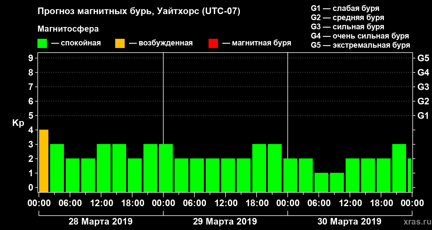Прогноз магнитных бурь в Уайтхорсе — 28 марта 2019 года