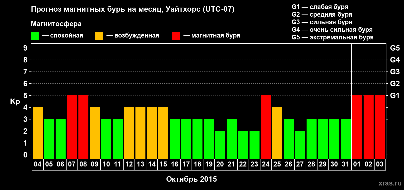Прогноз магнитных бурь в Уайтхорсе на 4 октября 2015 года
