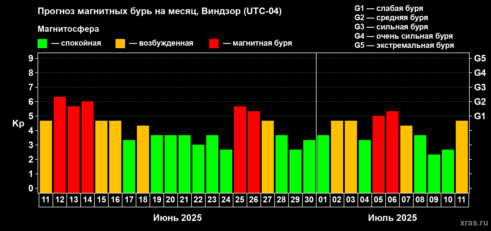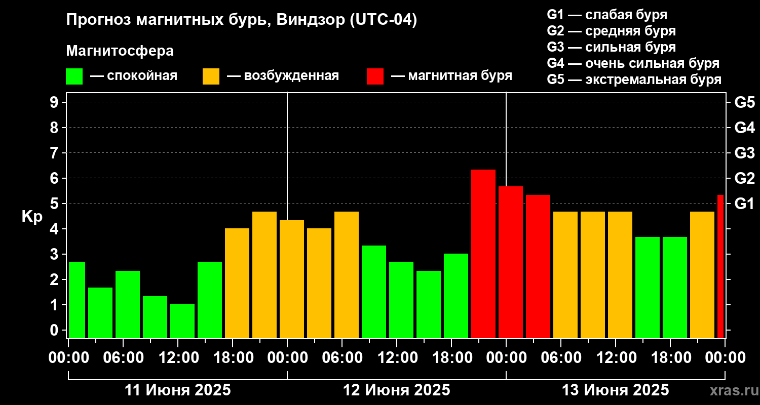 Прогноз магнитных бурь в Виндзоре на 11 июня 2025 года