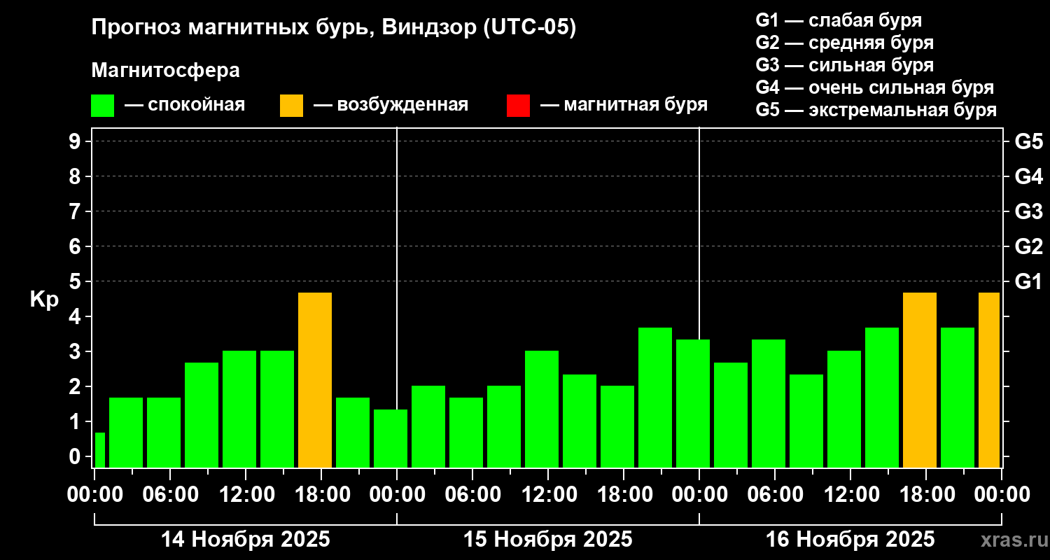 Прогноз магнитных бурь в Виндзоре на 14 ноября 2025 года