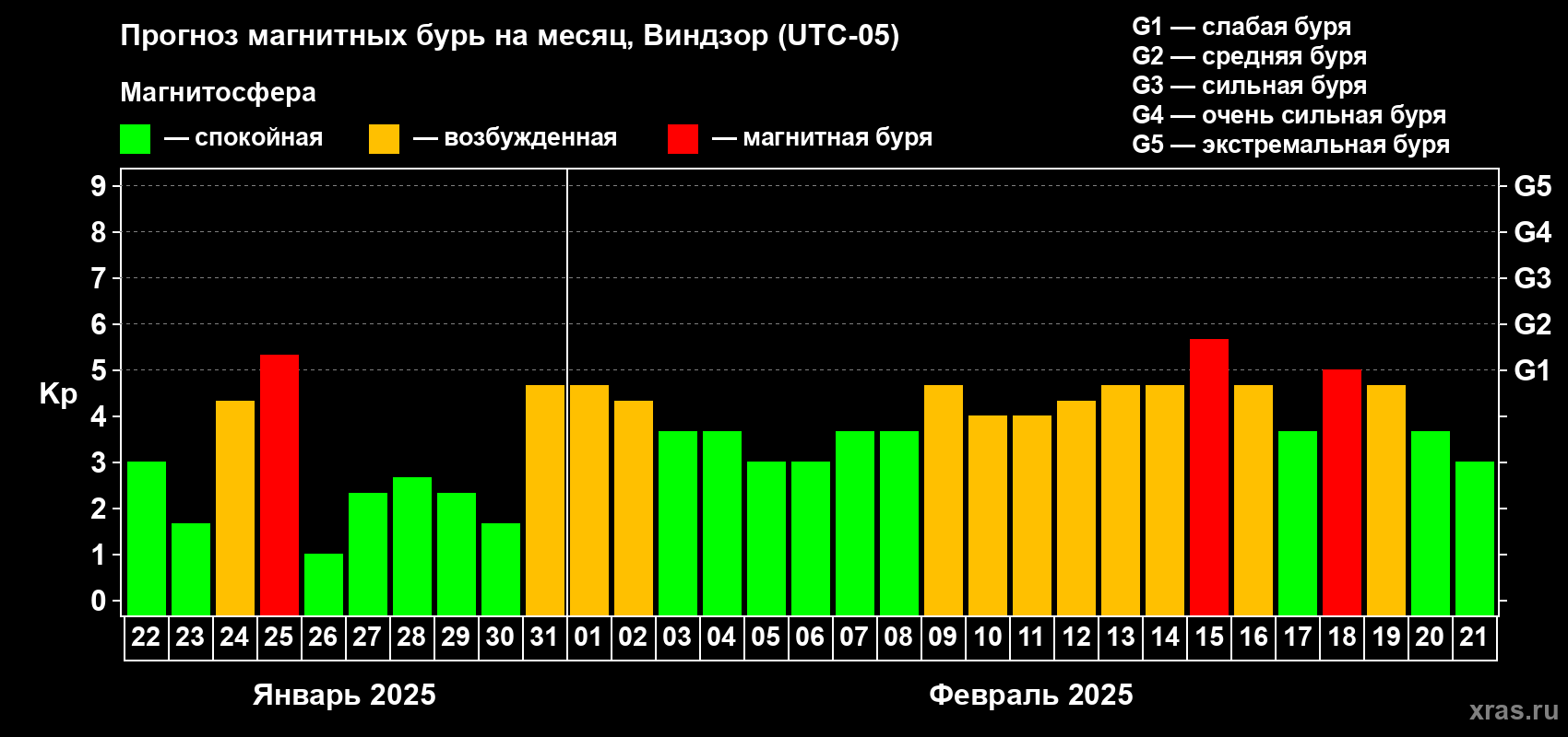 Прогноз магнитных бурь в Виндзоре на 22 января 2025 года