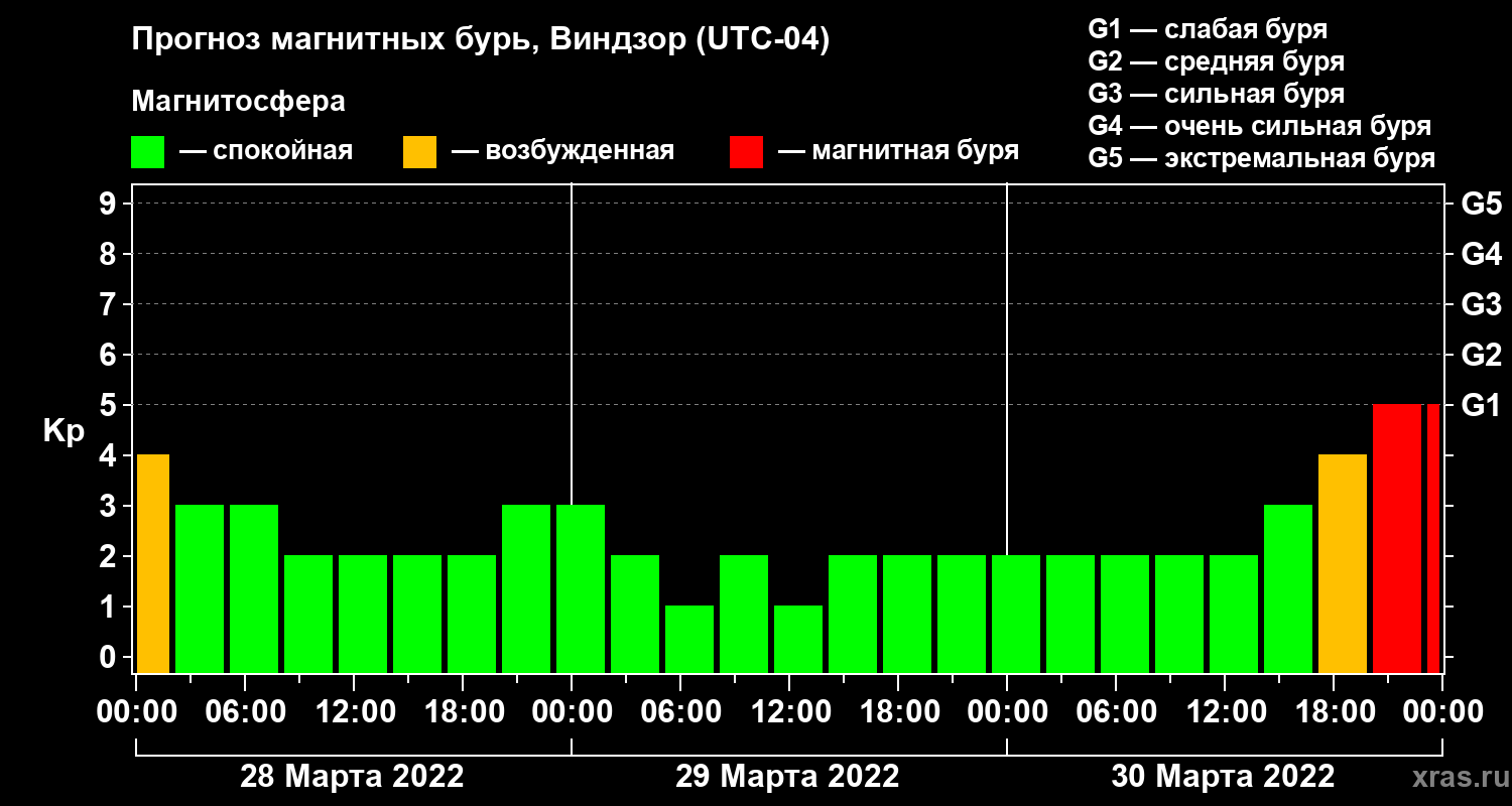 Прогноз магнитных бурь в Виндзоре на 28 марта 2022 года