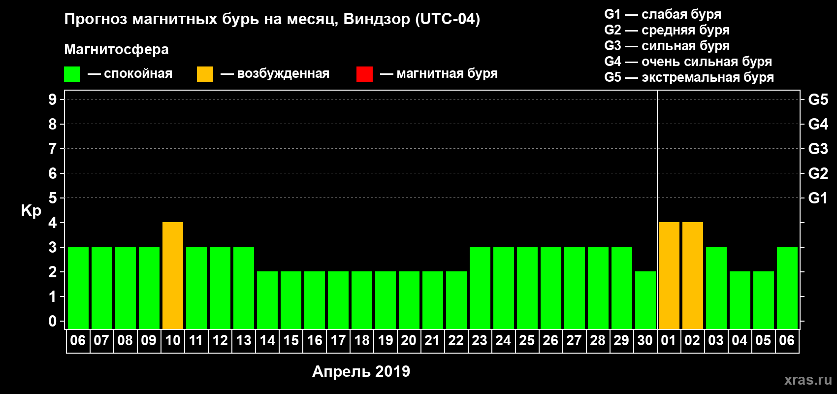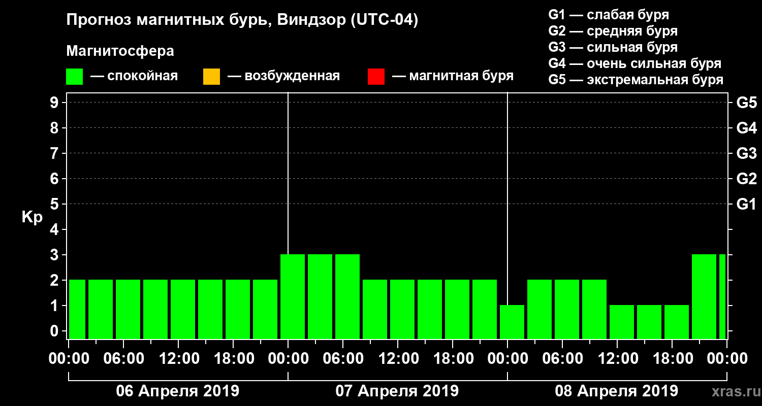 Прогноз магнитных бурь в Виндзоре — 6 апреля 2019 года