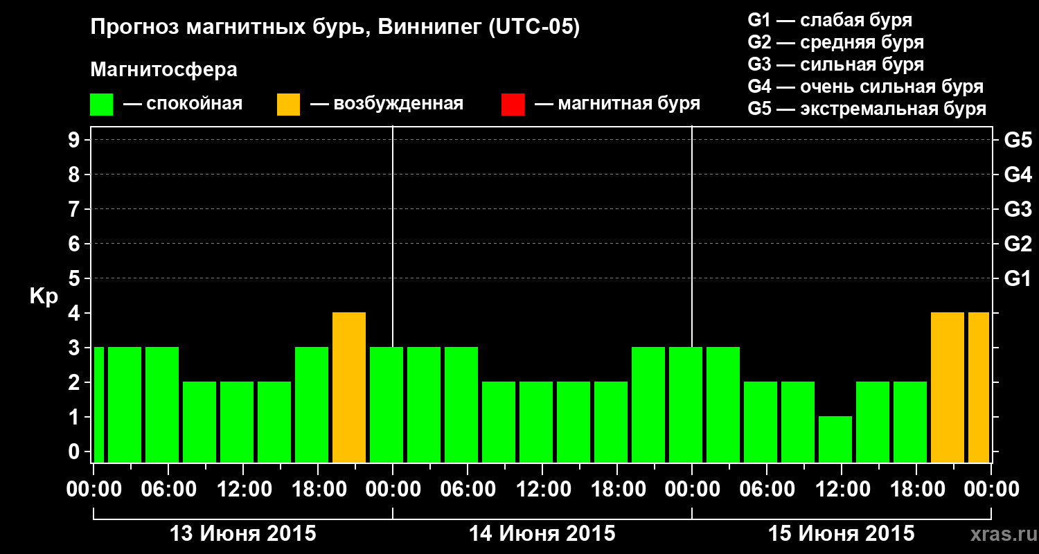 Прогноз магнитных бурь в Виннипеге на 13 июня 2015 года
