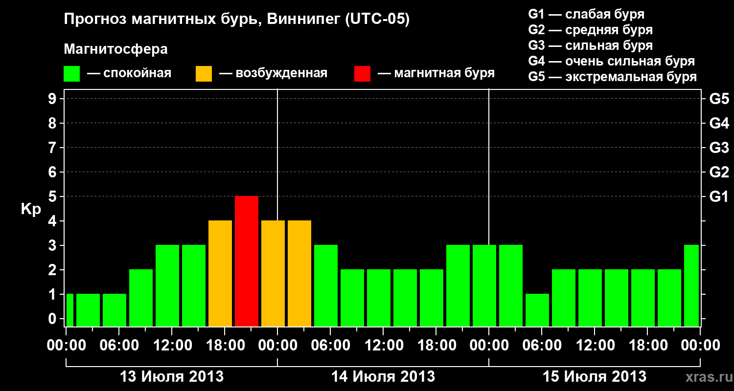 Прогноз магнитных бурь в Виннипеге — 13 июля 2013 года