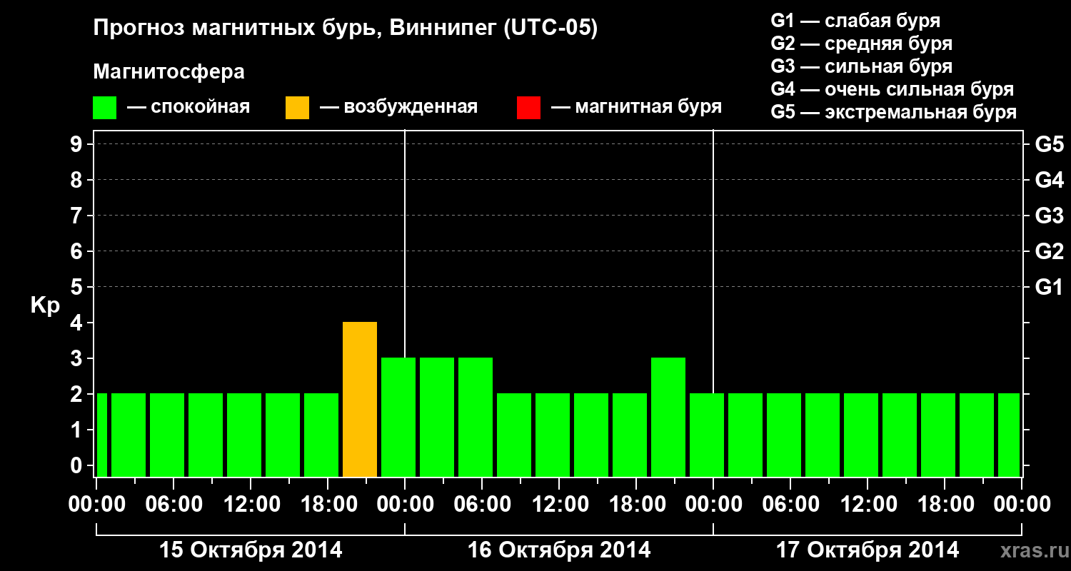 Прогноз магнитных бурь в Виннипеге на 15 октября 2014 года