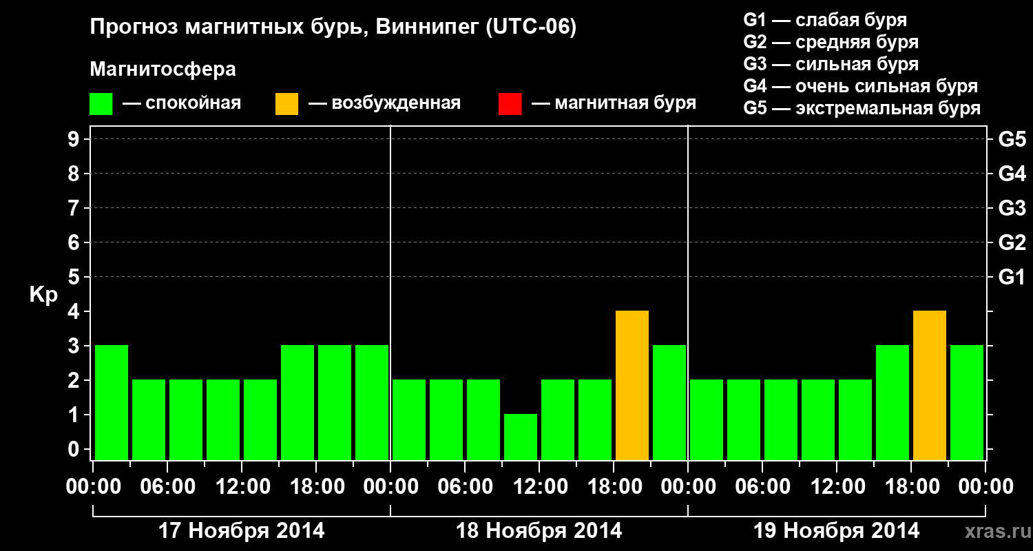 Прогноз магнитных бурь в Виннипеге — 17 ноября 2014 года