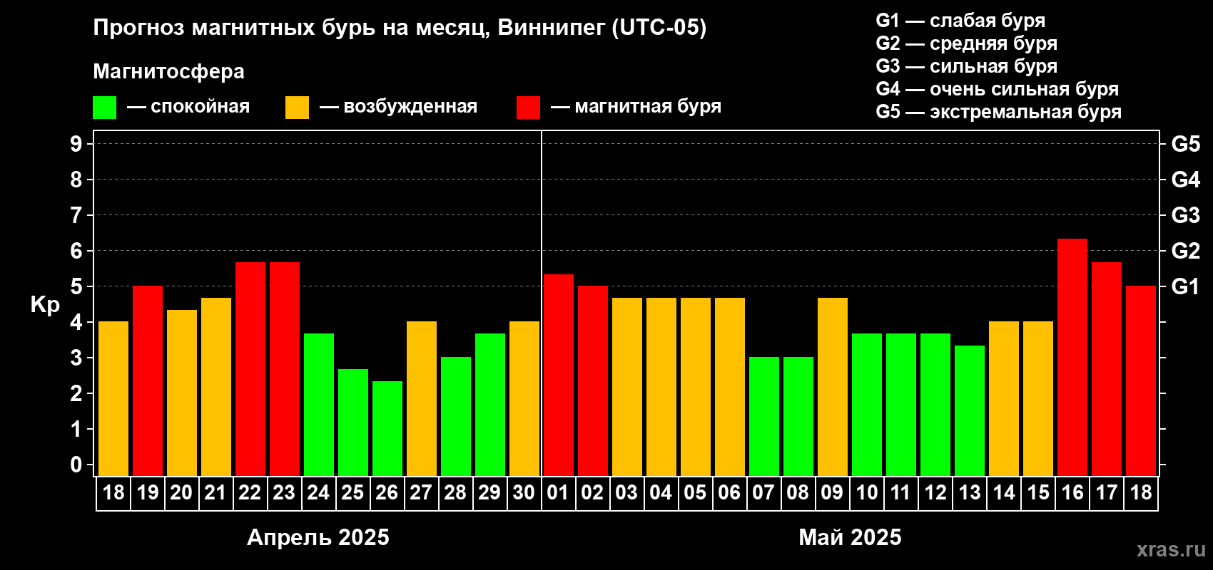 Прогноз магнитных бурь в Виннипеге — 18 апреля 2025 года