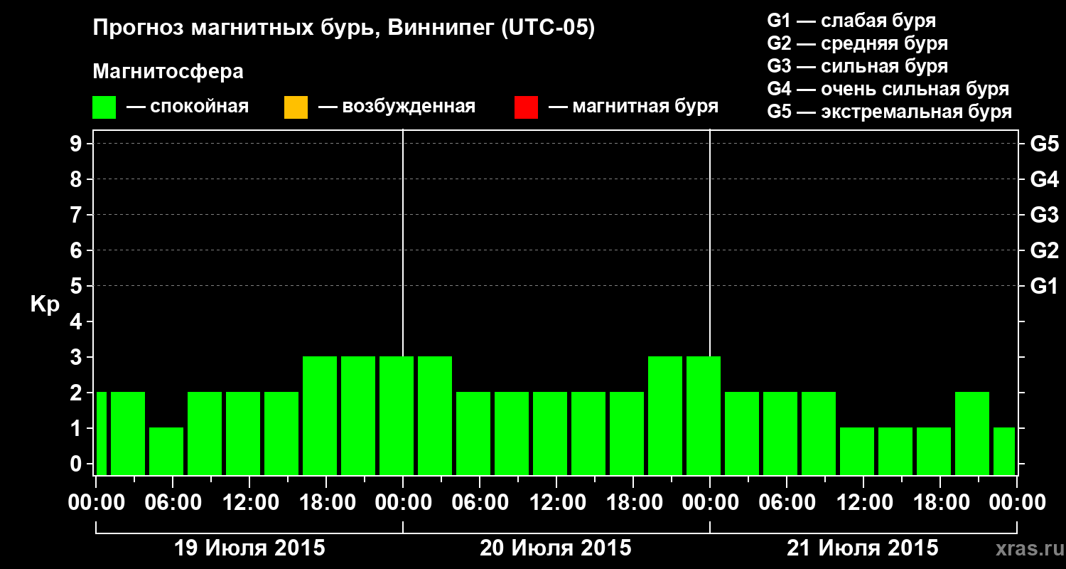 Прогноз магнитных бурь в Виннипеге — 19 июля 2015 года