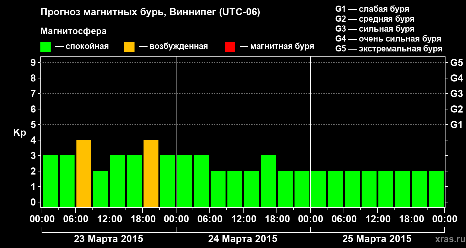 Прогноз магнитных бурь в Виннипеге на 23 марта 2015 года