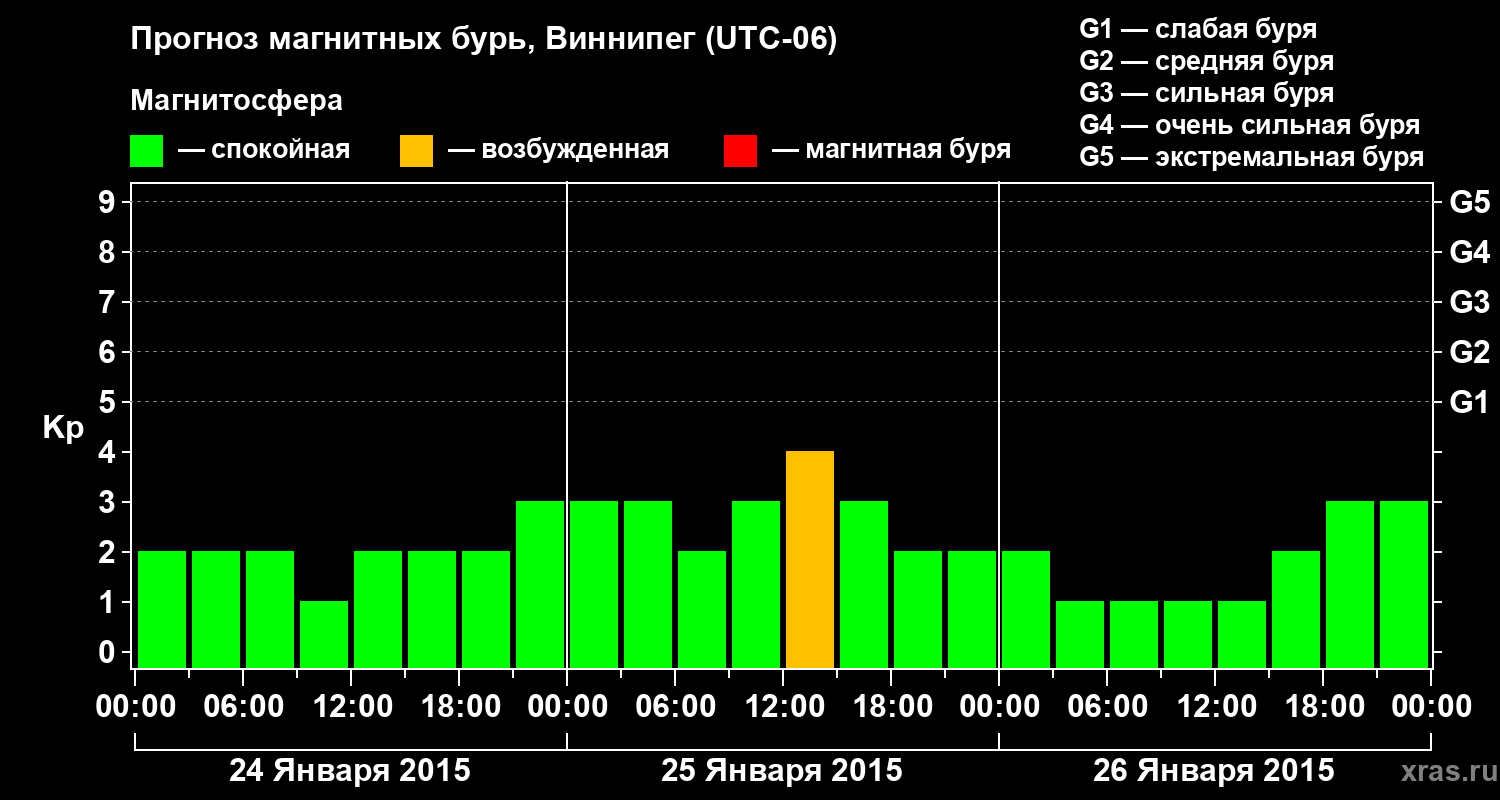 Прогноз магнитных бурь в Виннипеге — 24 января 2015 года