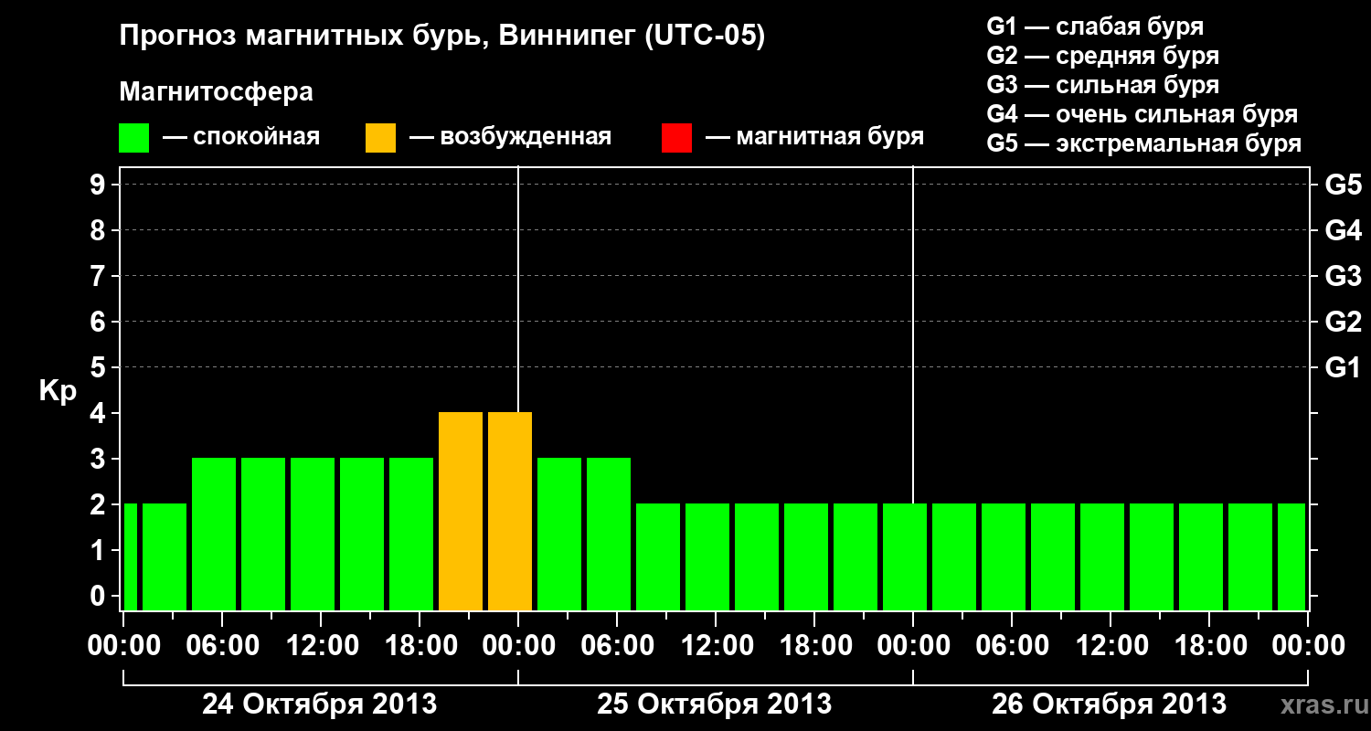 Прогноз магнитных бурь в Виннипеге на 24 октября 2013 года