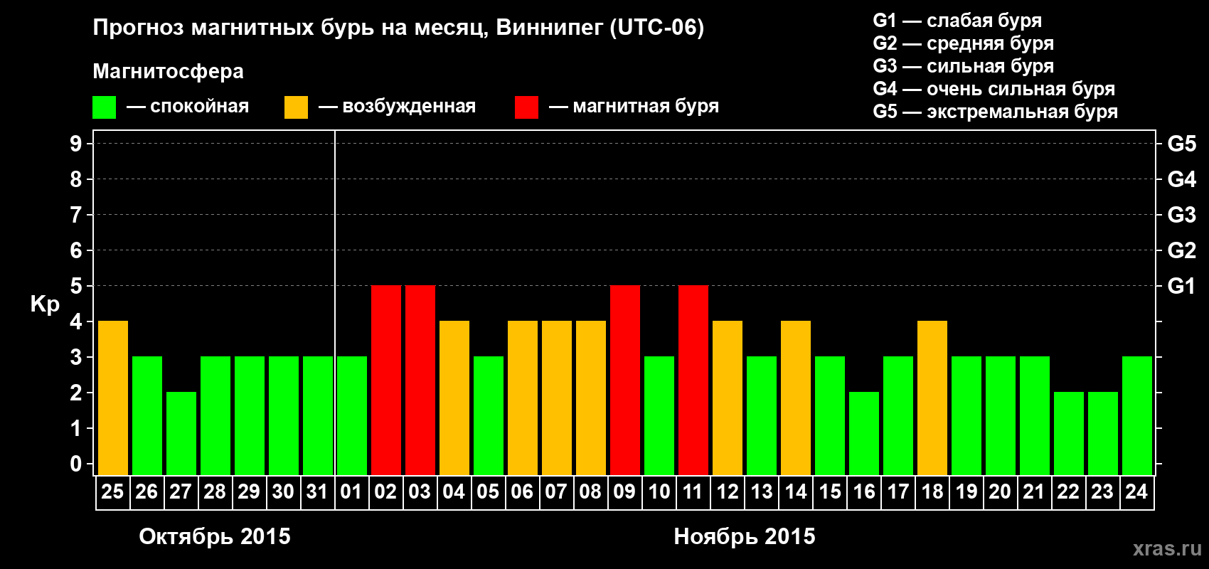 Прогноз магнитных бурь в Виннипеге — 25 октября 2015 года