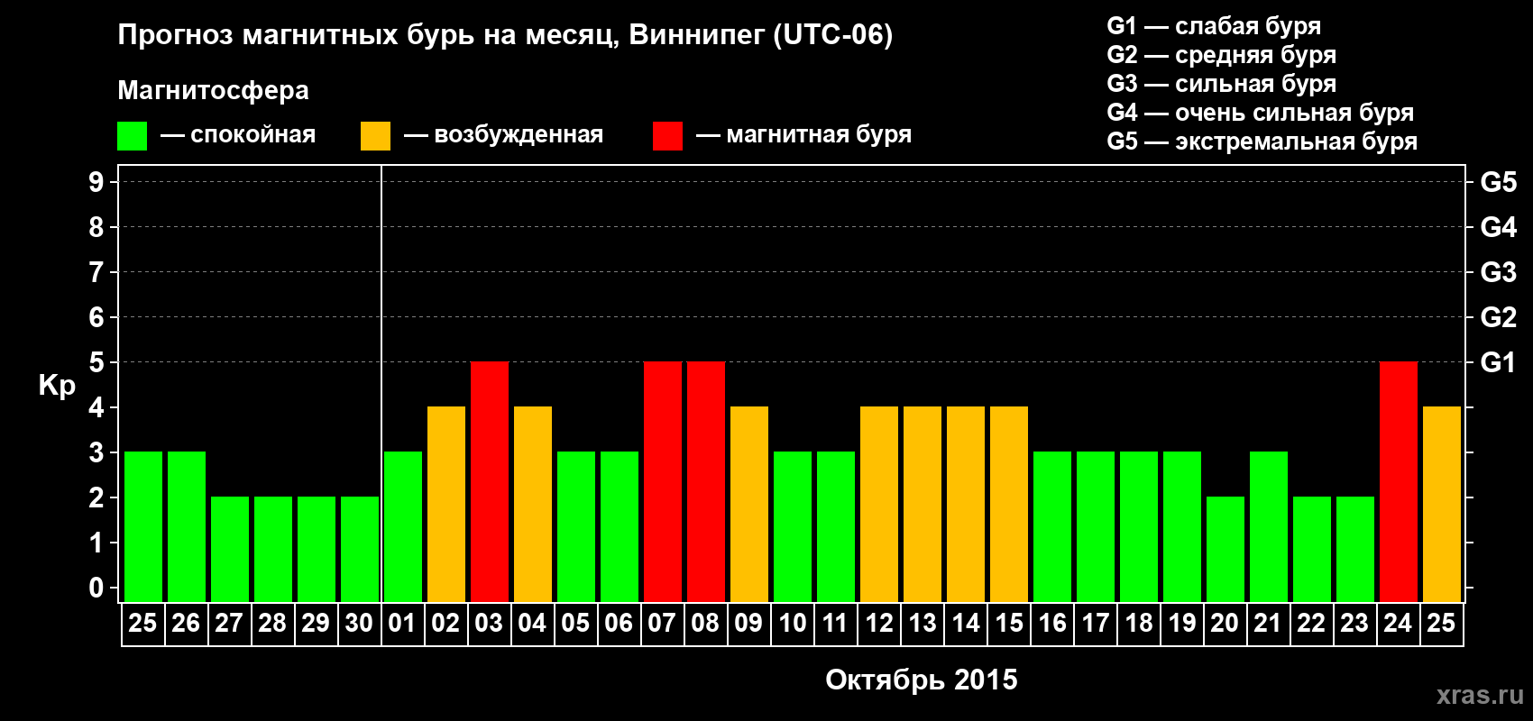 Прогноз магнитных бурь в Виннипеге — 25 сентября 2015 года