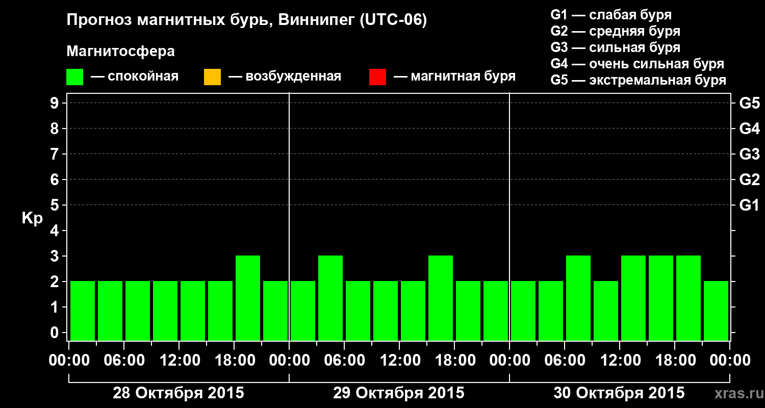 Прогноз магнитных бурь в Виннипеге — 28 октября 2015 года
