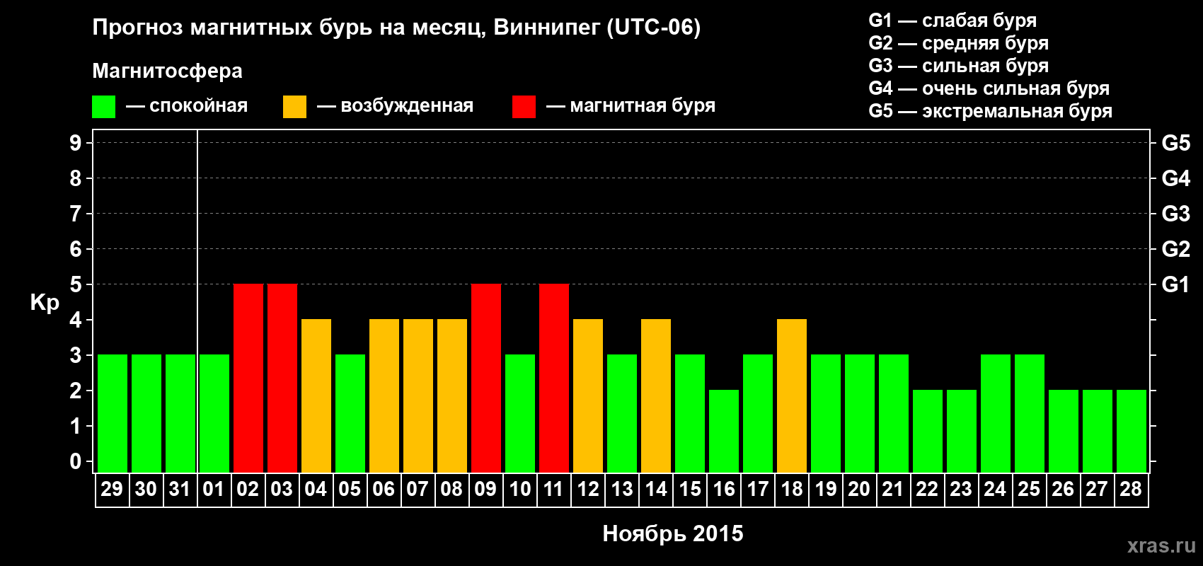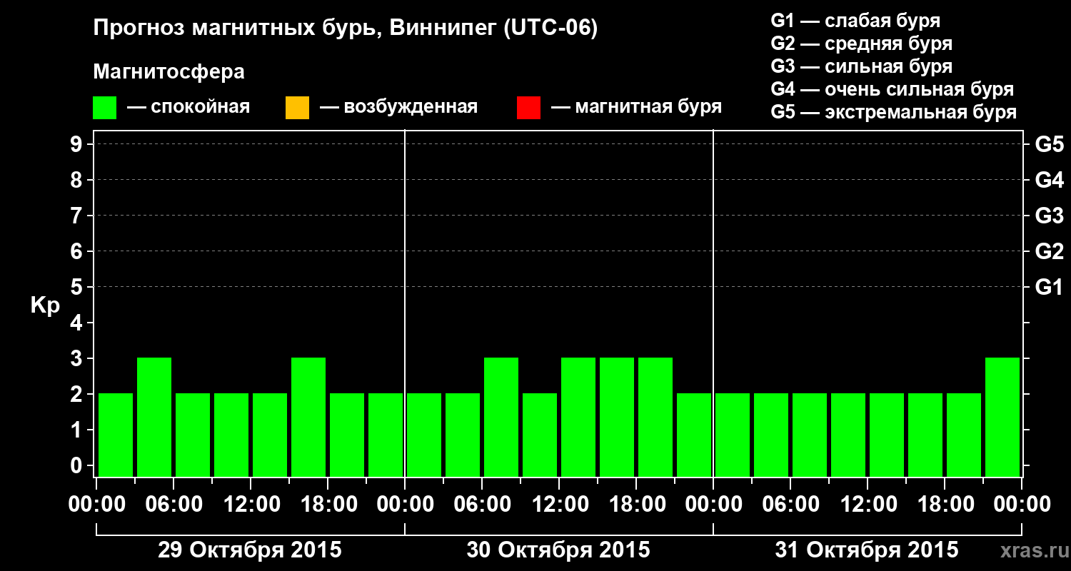 Прогноз магнитных бурь в Виннипеге — 29 октября 2015 года