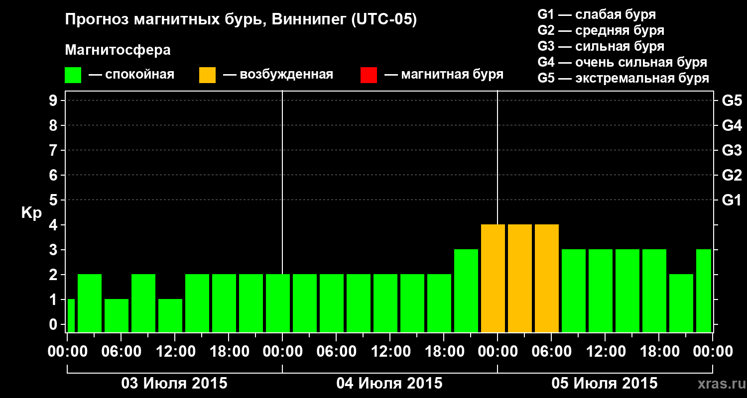 Прогноз магнитных бурь в Виннипеге — 3 июля 2015 года