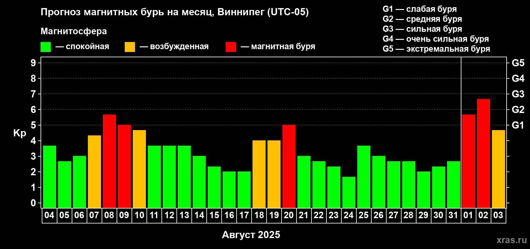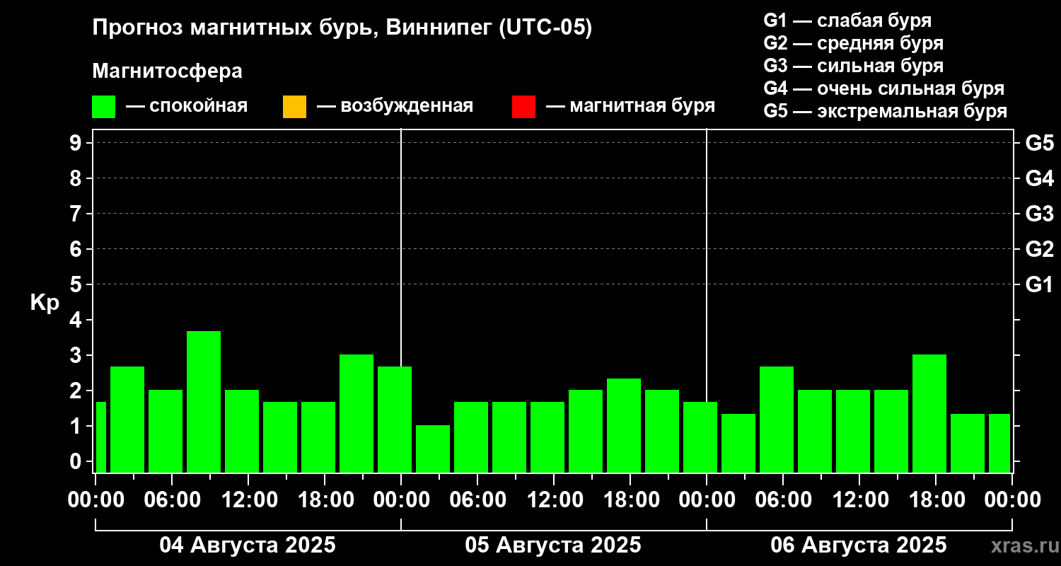 Прогноз магнитных бурь в Виннипеге — 4 августа 2025 года