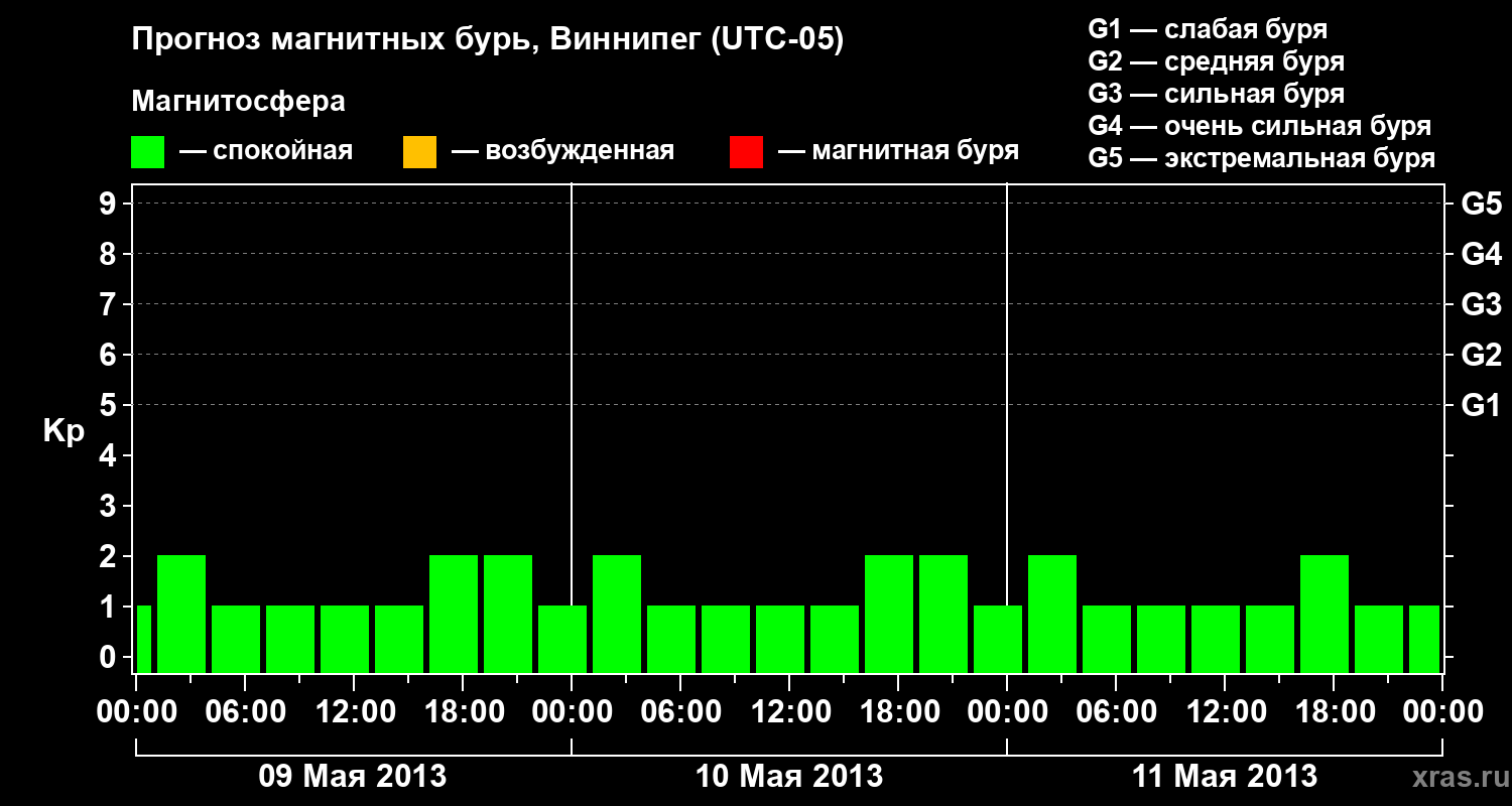 Прогноз магнитных бурь в Виннипеге на 9 мая 2013 года