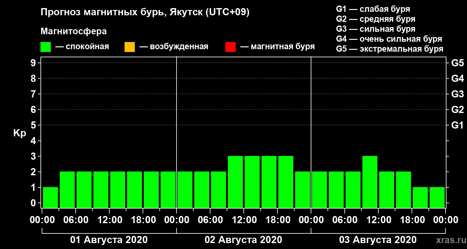 Прогноз магнитных бурь в Якутске на 1 августа 2020 года