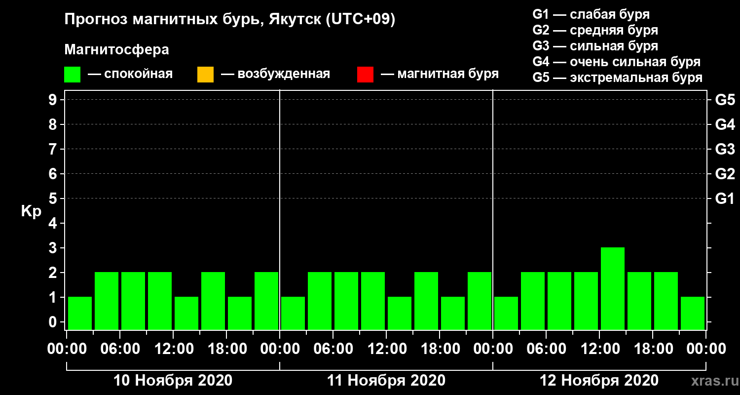Прогноз магнитных бурь в Якутске — 10 ноября 2020 года