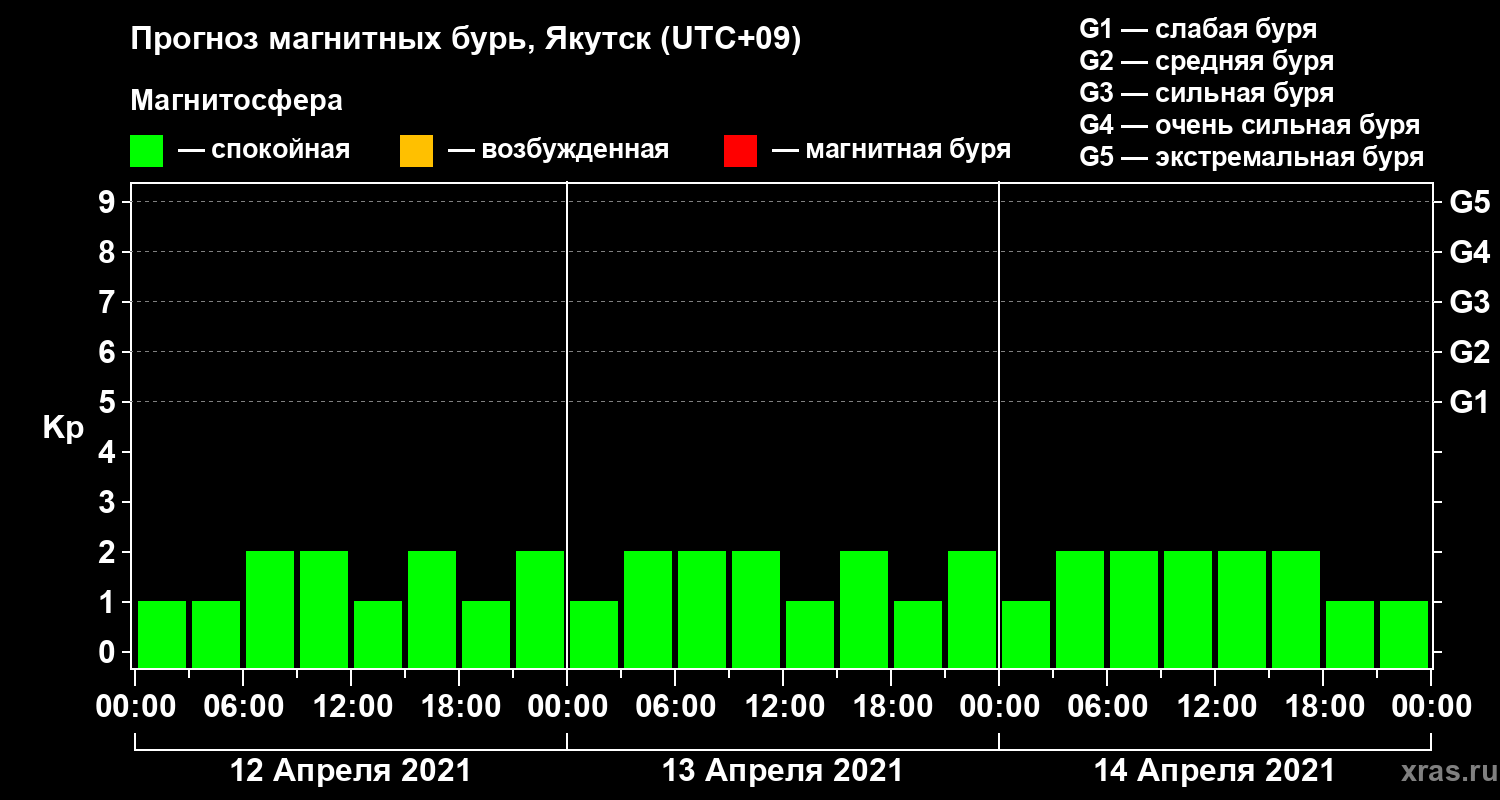 Прогноз магнитных бурь в Якутске на 12 апреля 2021 года