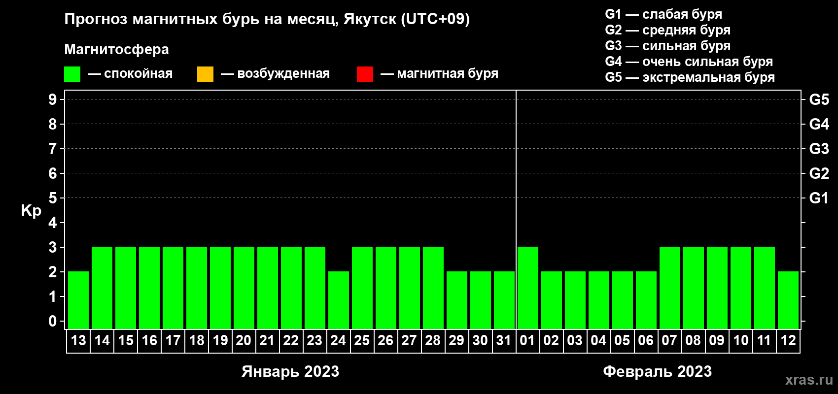 Прогноз магнитных бурь в Якутске — 13 января 2023 года