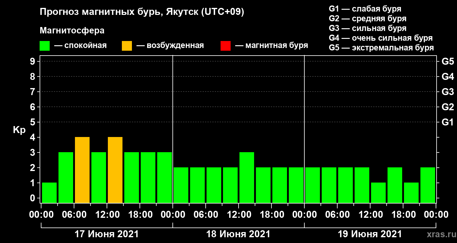Прогноз магнитных бурь в Якутске — 17 июня 2021 года