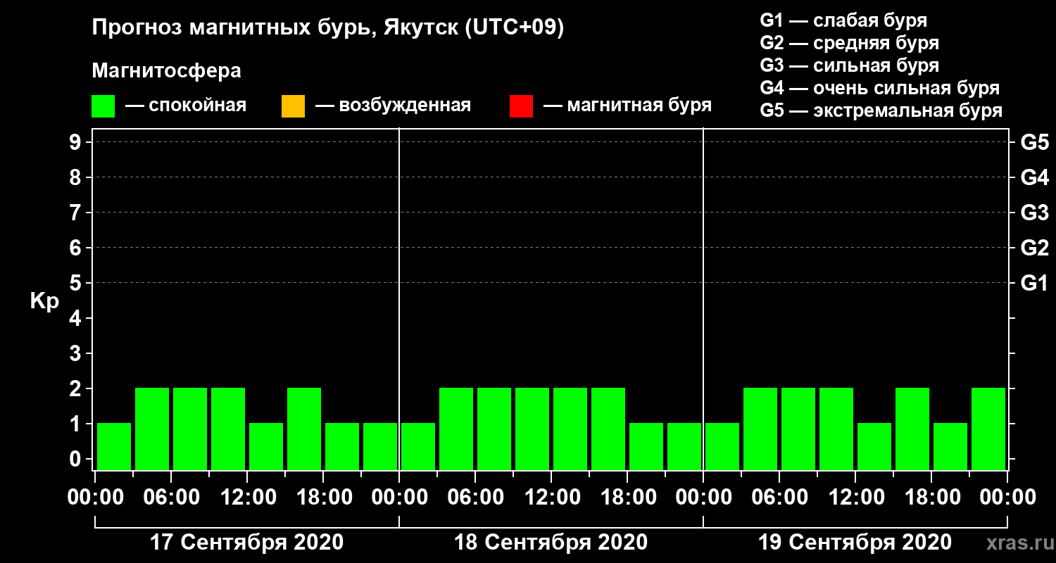 Прогноз магнитных бурь в Якутске на 17 сентября 2020 года