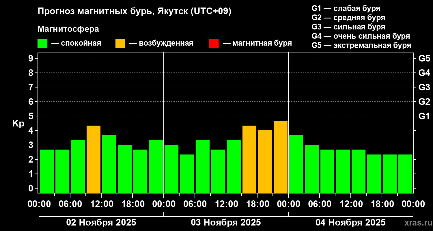 Прогноз магнитных бурь в Якутске — 2 ноября 2025 года