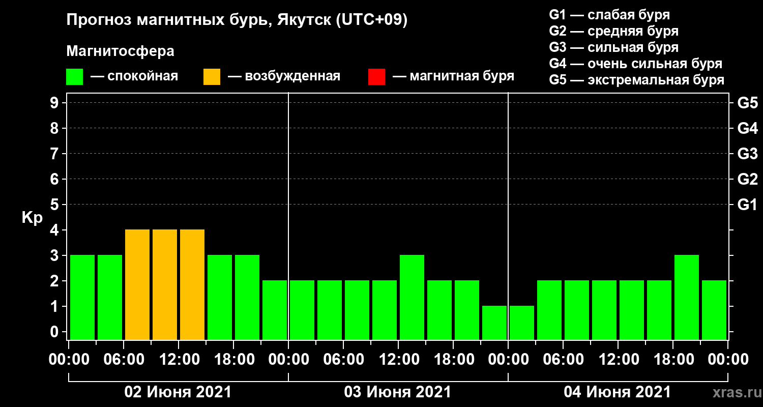 Прогноз магнитных бурь в Якутске — 2 июня 2021 года