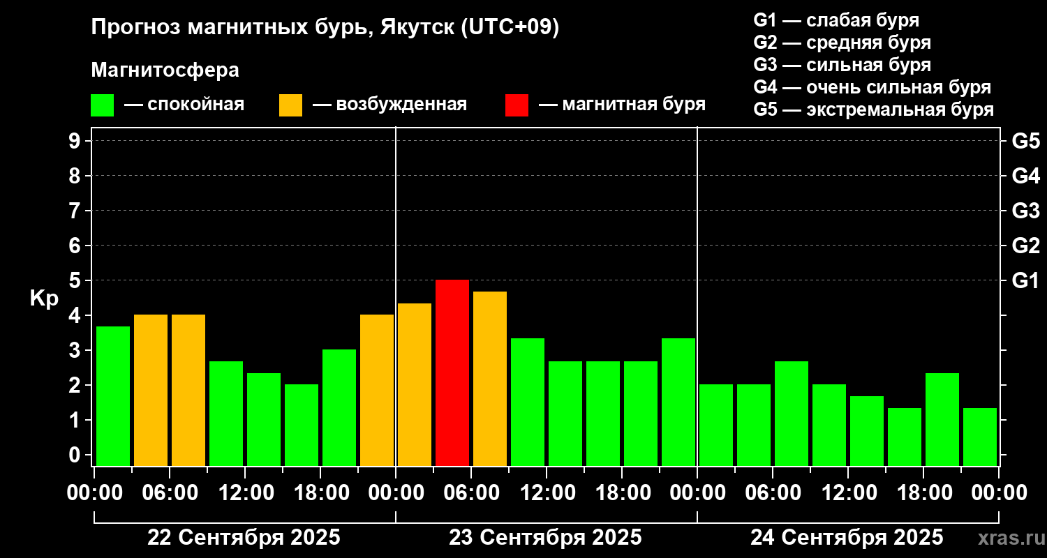 Прогноз магнитных бурь в Якутске — 22 сентября 2025 года