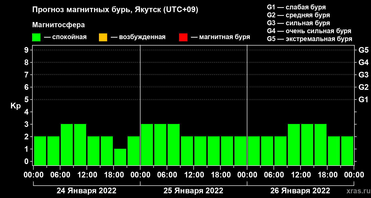 Прогноз магнитных бурь в Якутске на 24 января 2022 года