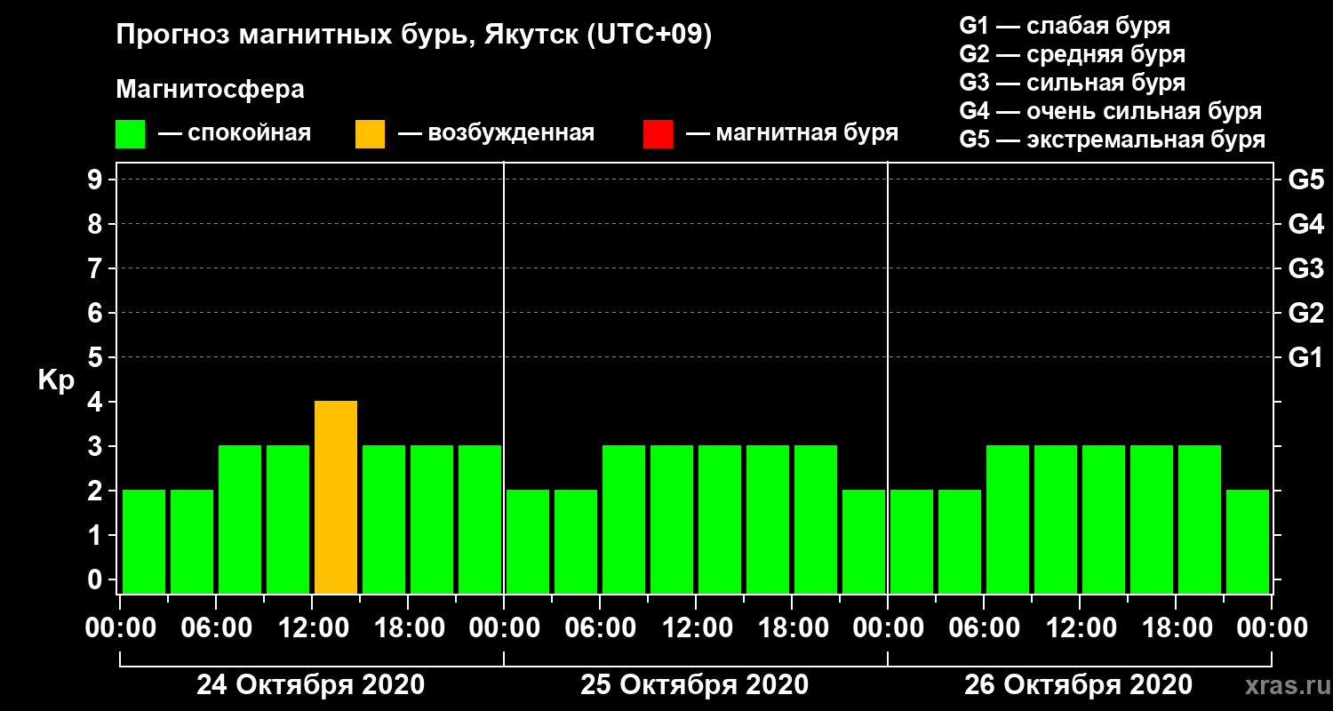 Прогноз магнитных бурь в Якутске — 24 октября 2020 года