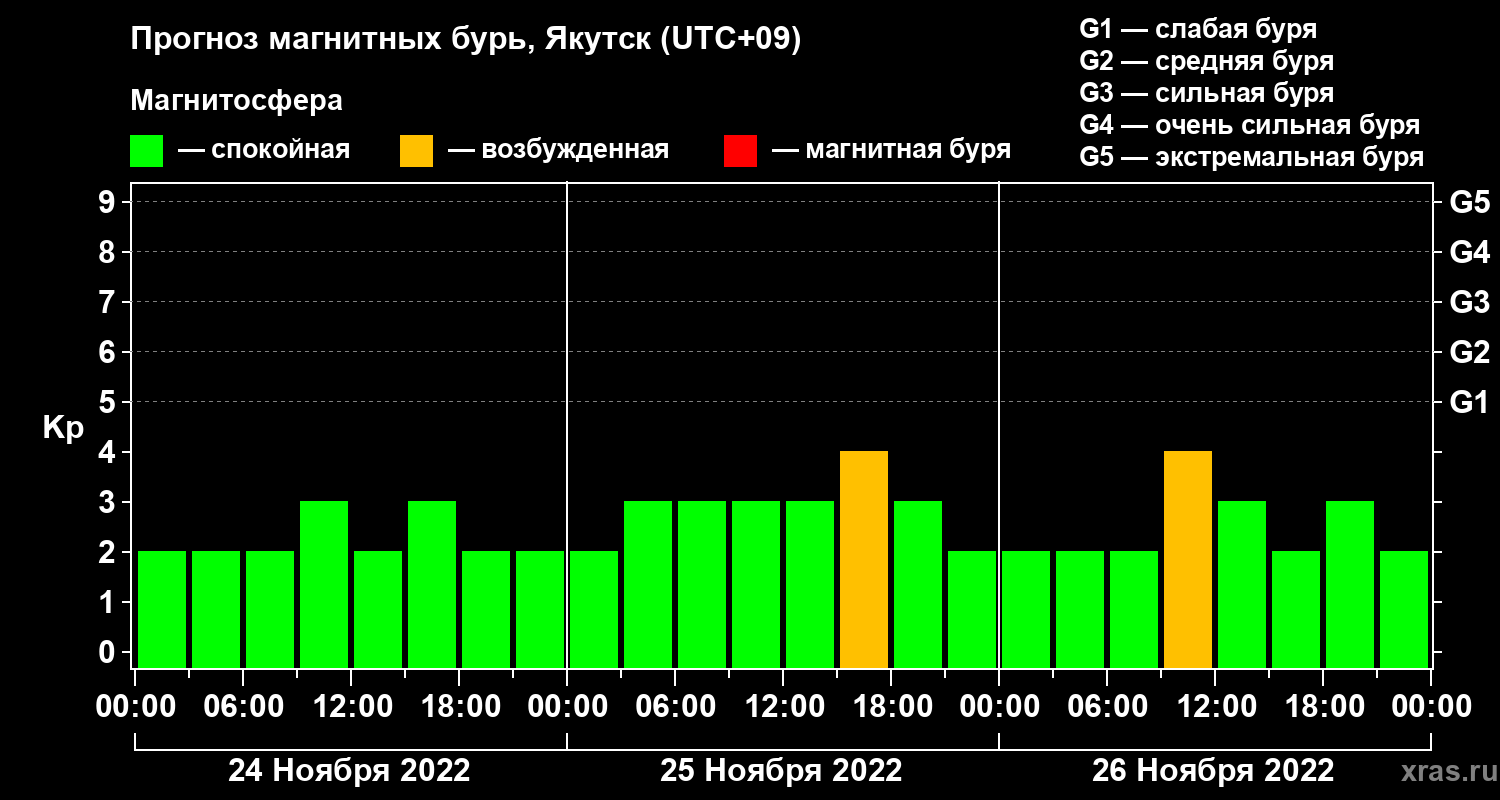 Прогноз магнитных бурь в Якутске — 24 ноября 2022 года
