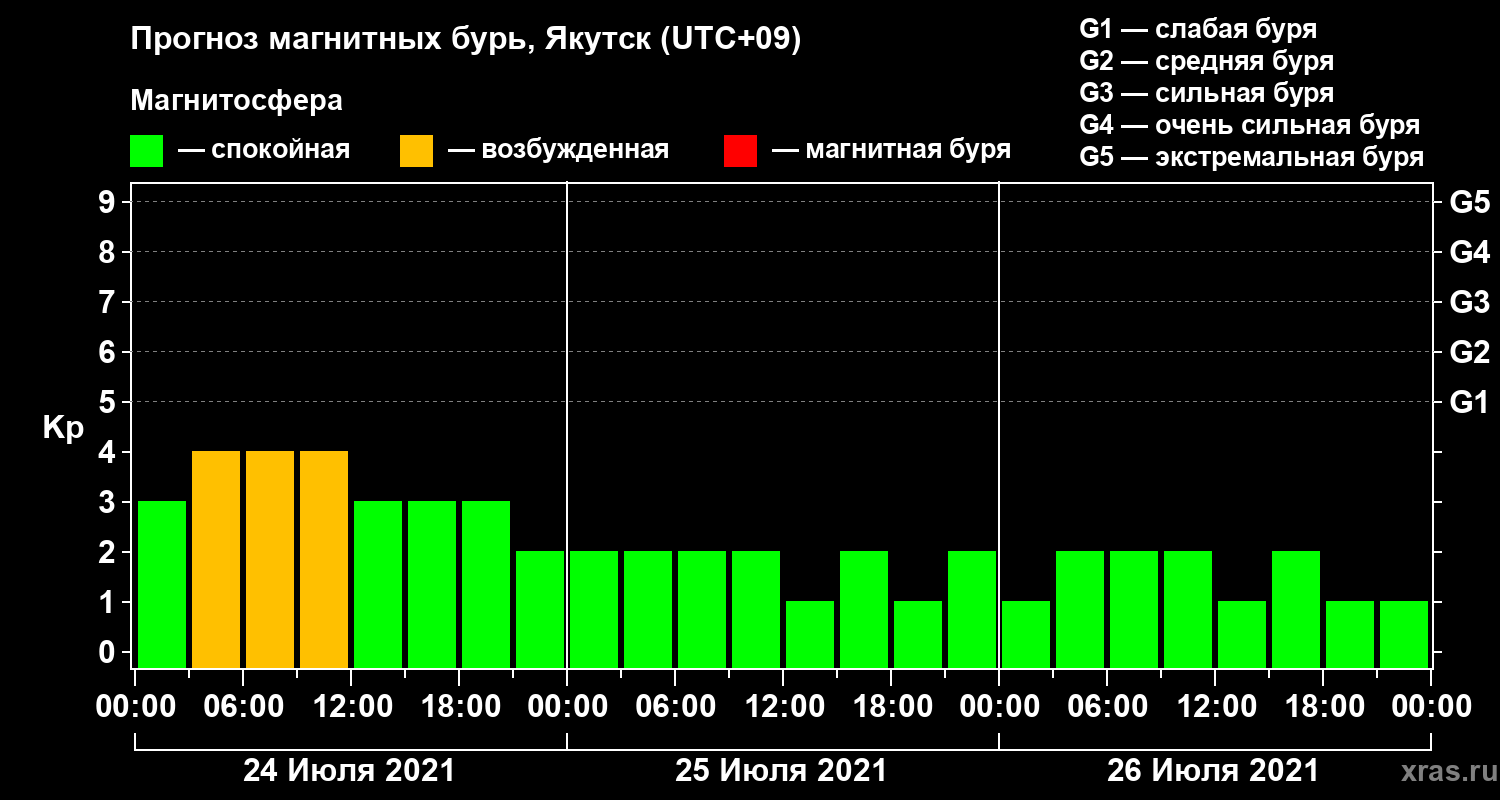 Прогноз магнитных бурь в Якутске — 24 июля 2021 года