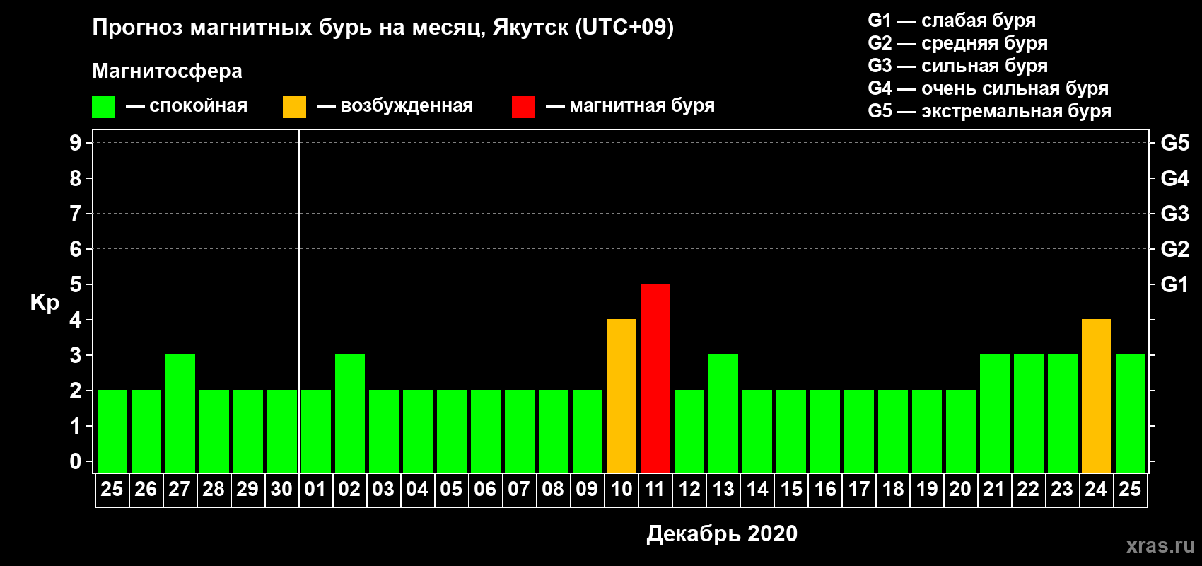 Прогноз магнитных бурь в Якутске — 25 ноября 2020 года