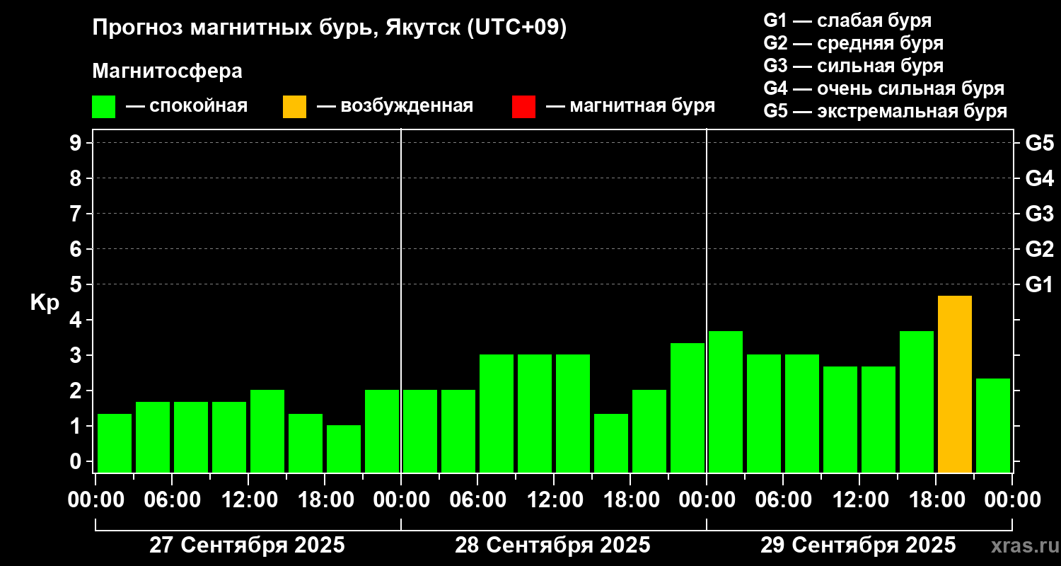 Прогноз магнитных бурь в Якутске — 27 сентября 2025 года