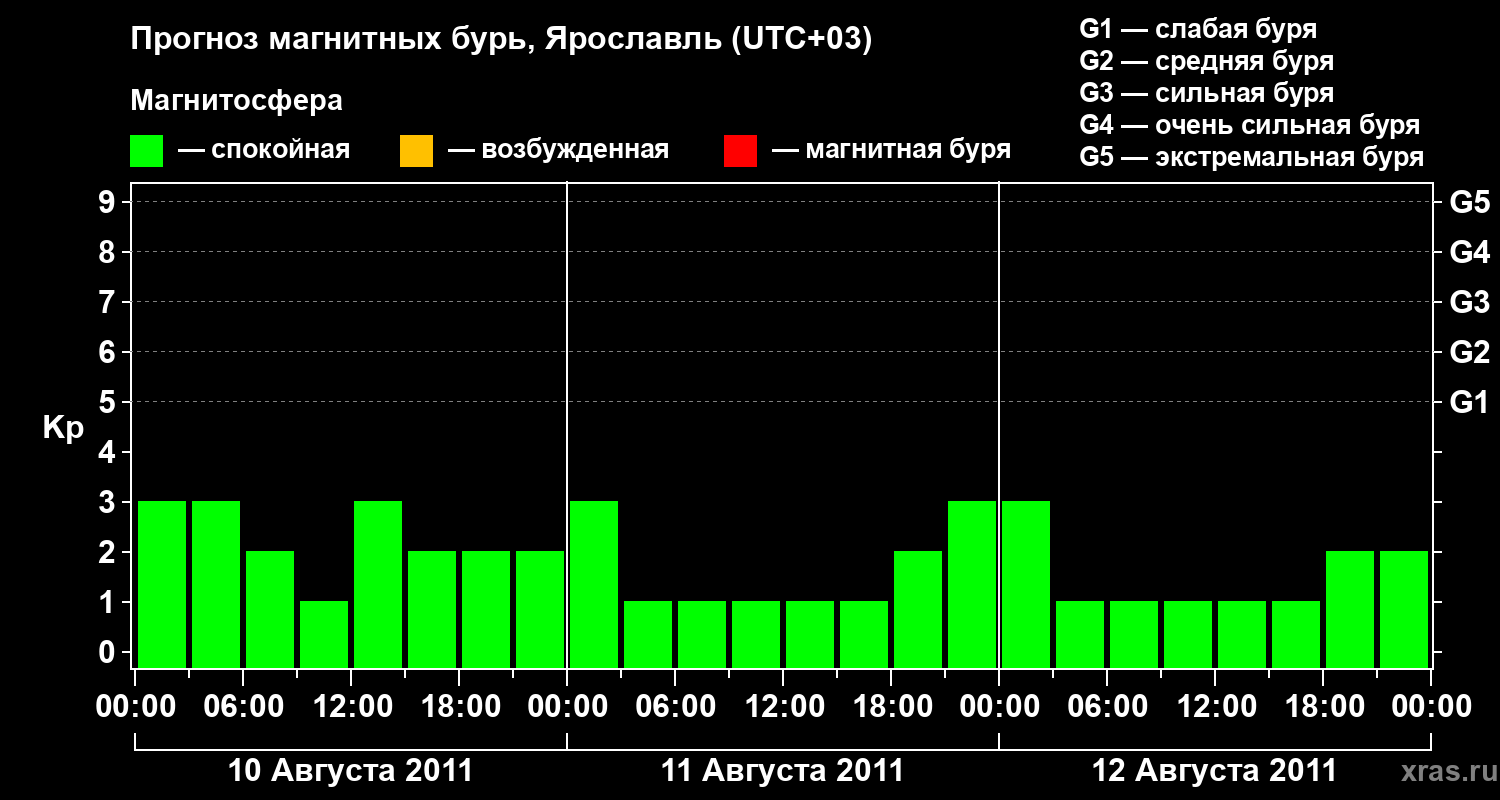 Прогноз магнитных бурь в Ярославле — 10 августа 2011 года