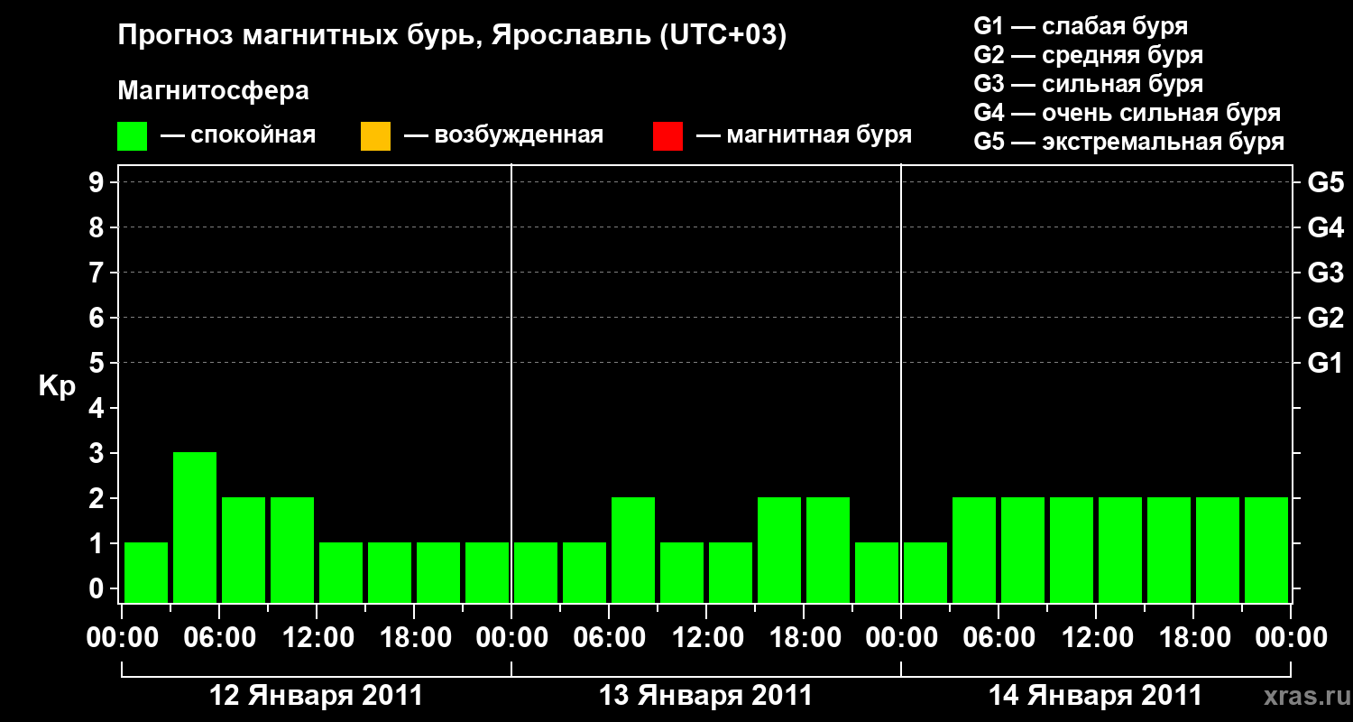 Прогноз магнитных бурь в Ярославле — 12 января 2011 года