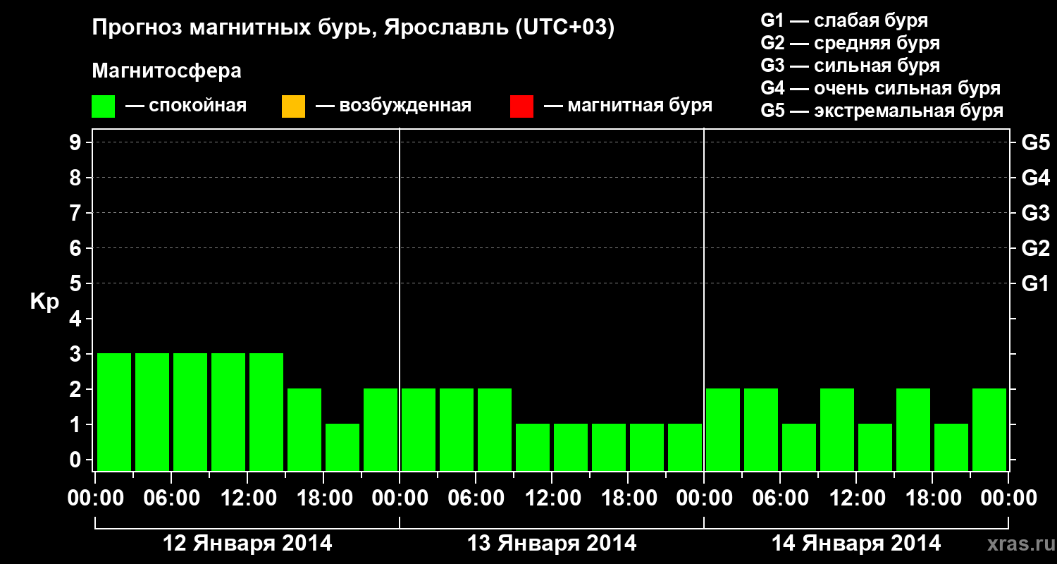 Прогноз магнитных бурь в Ярославле — 12 января 2014 года