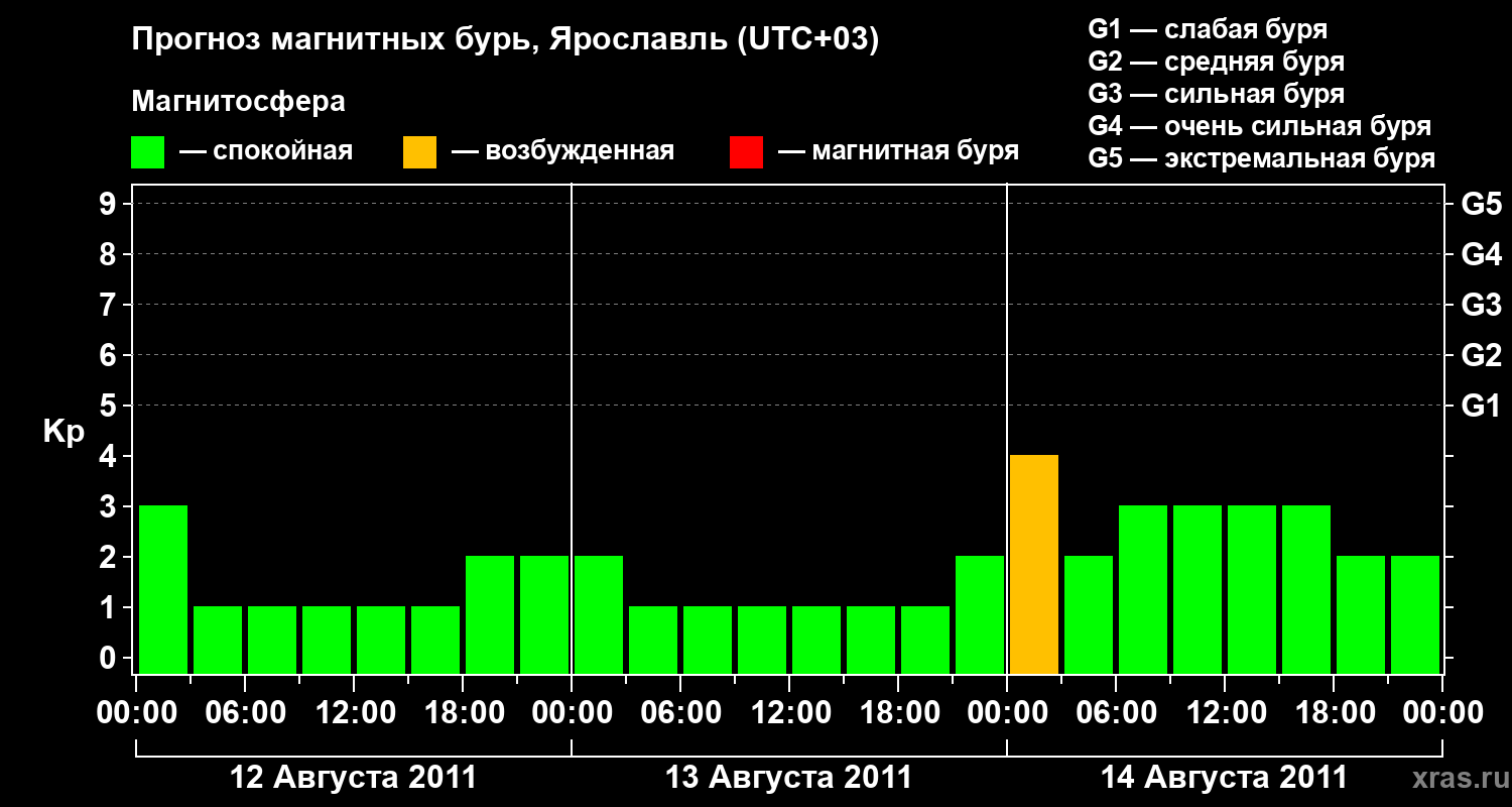 Прогноз магнитных бурь в Ярославле на 12 августа 2011 года