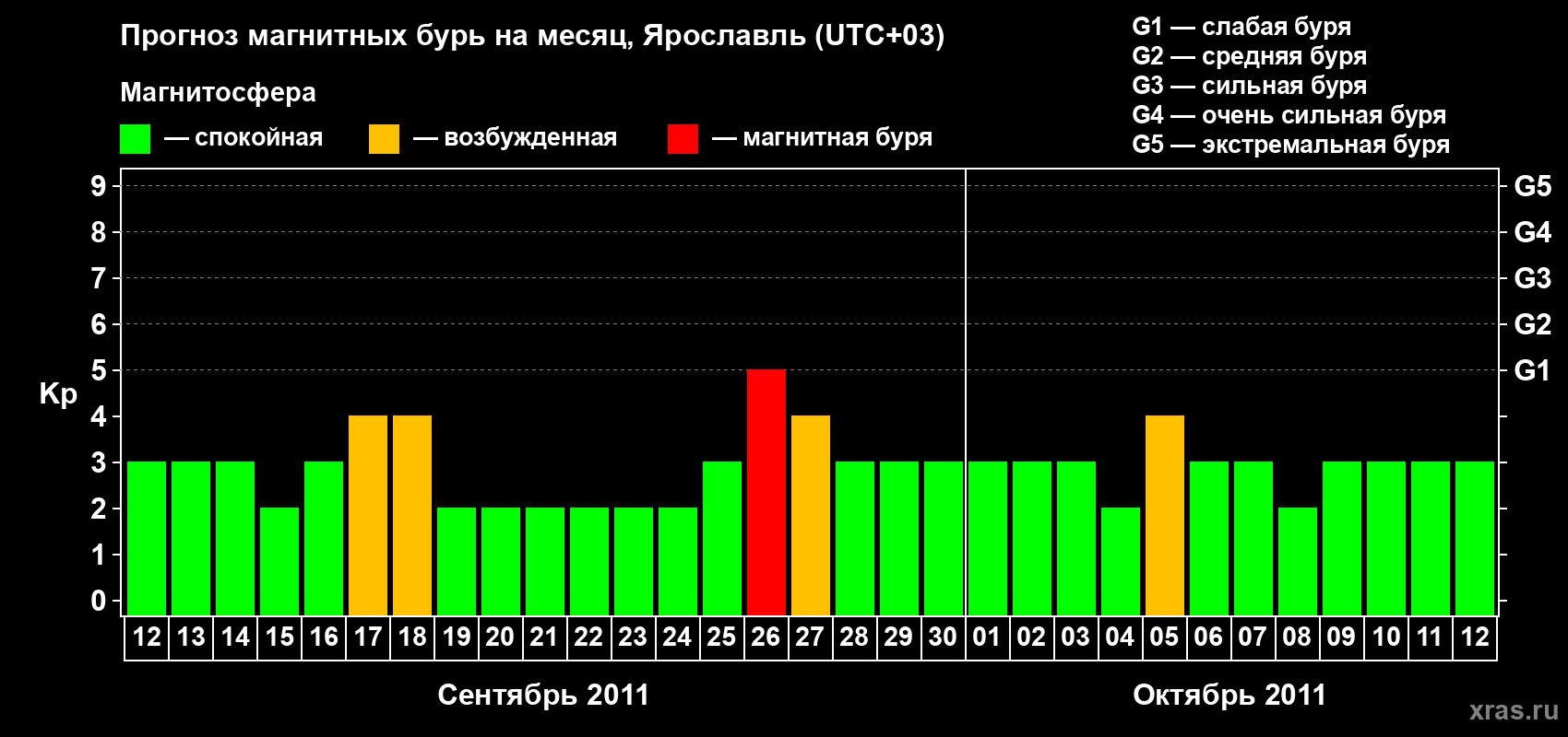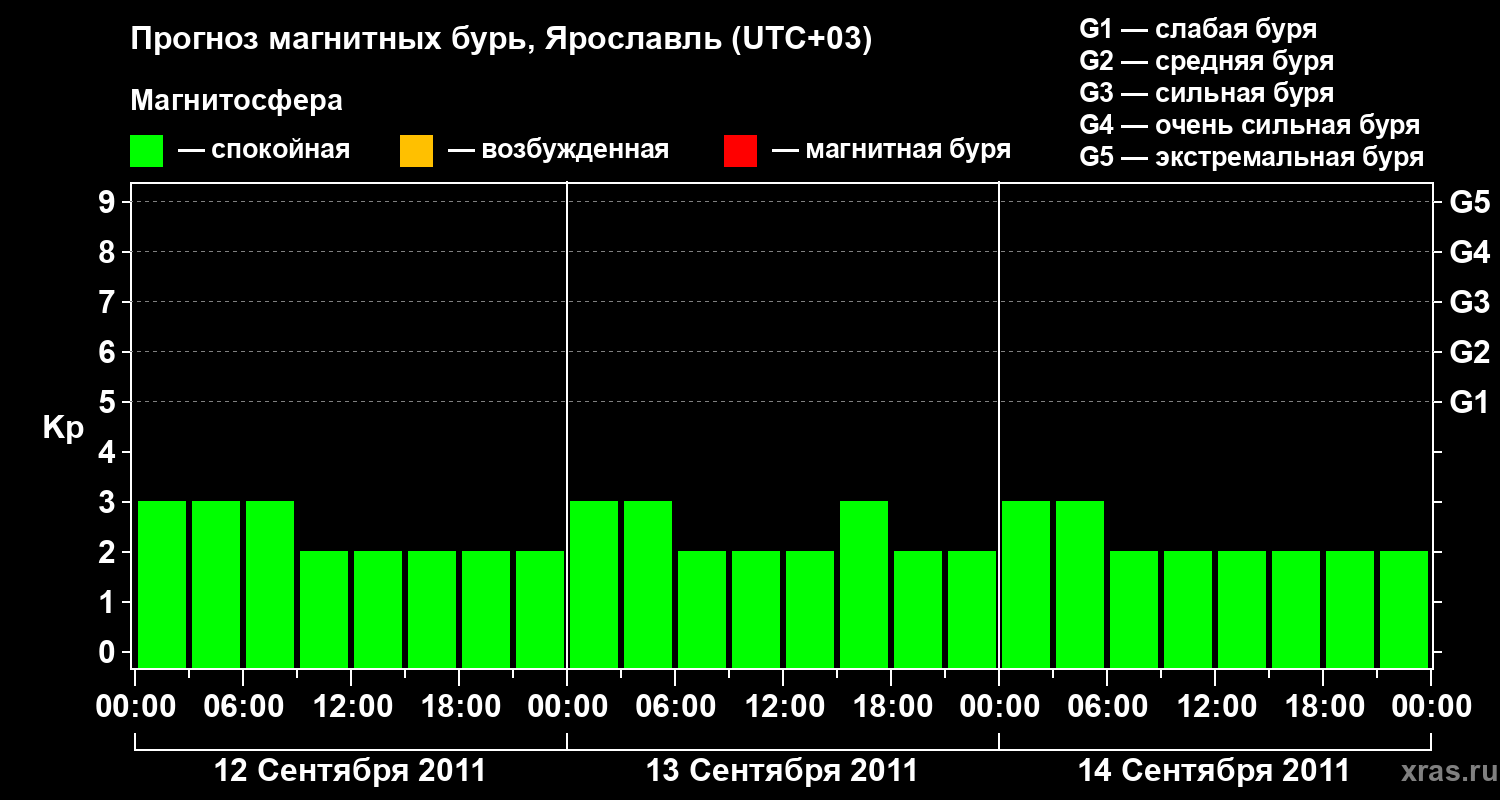 Прогноз магнитных бурь в Ярославле — 12 сентября 2011 года