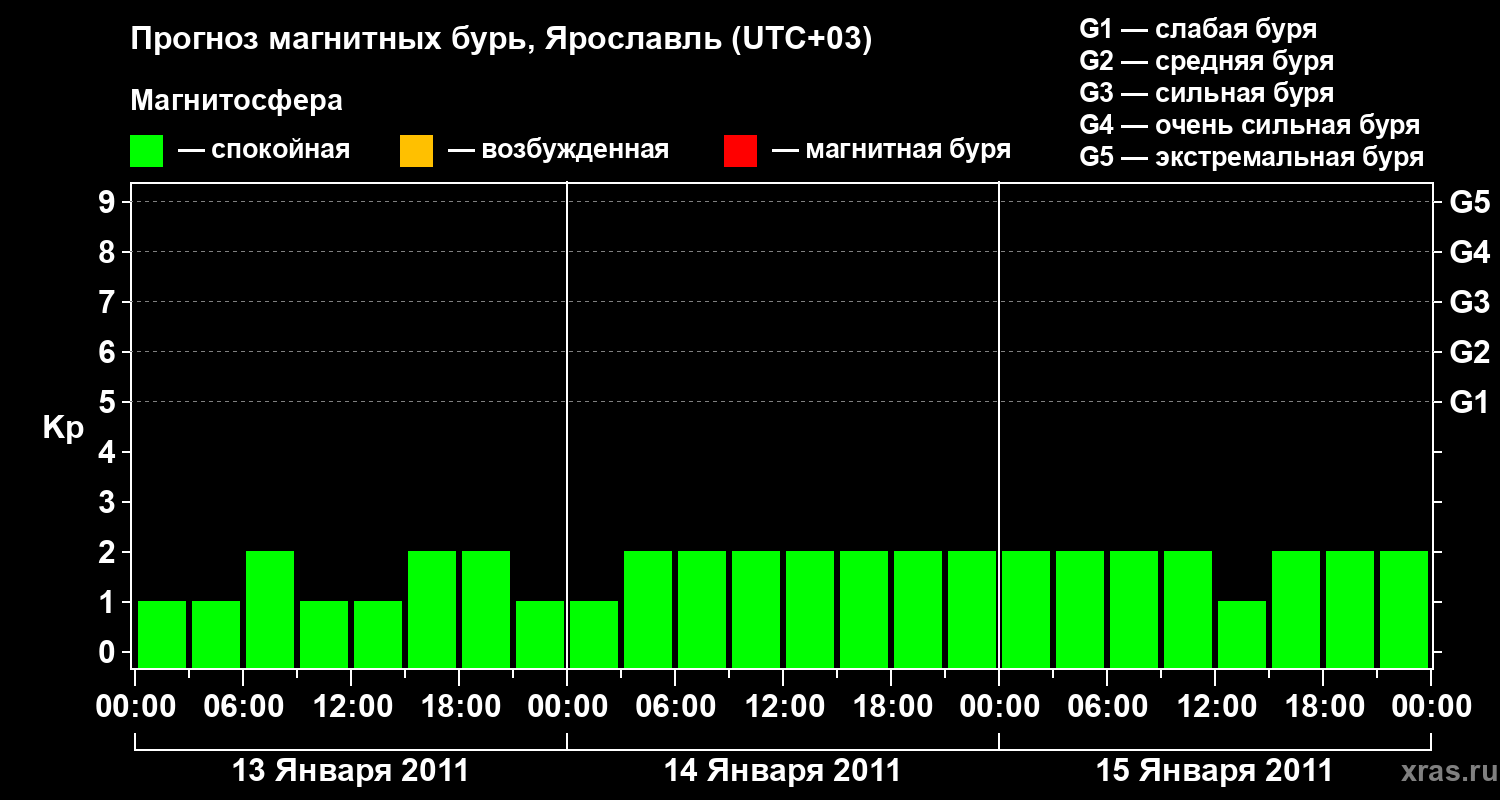 Прогноз магнитных бурь в Ярославле на 13 января 2011 года