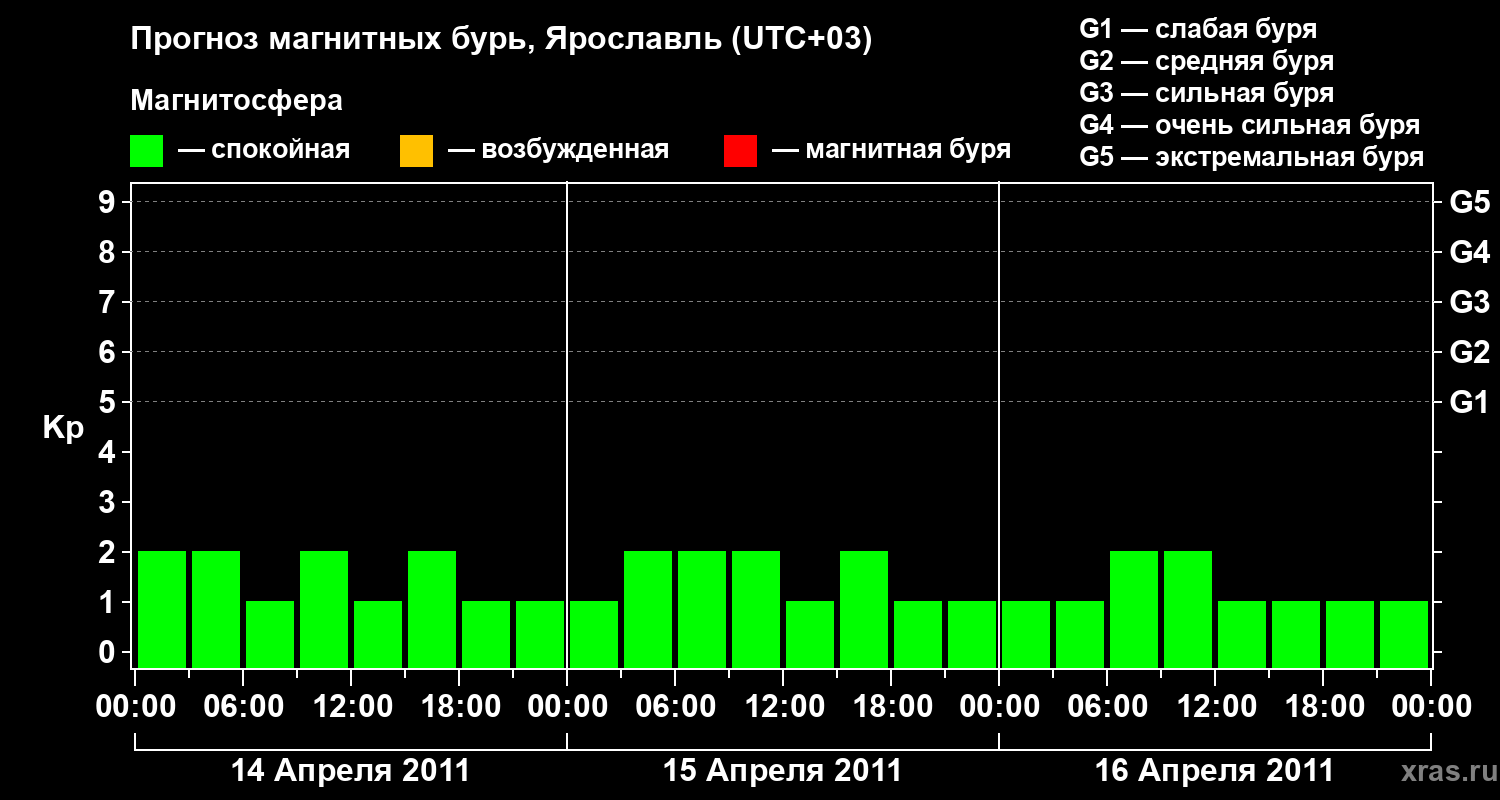 Прогноз магнитных бурь в Ярославле на 14 апреля 2011 года