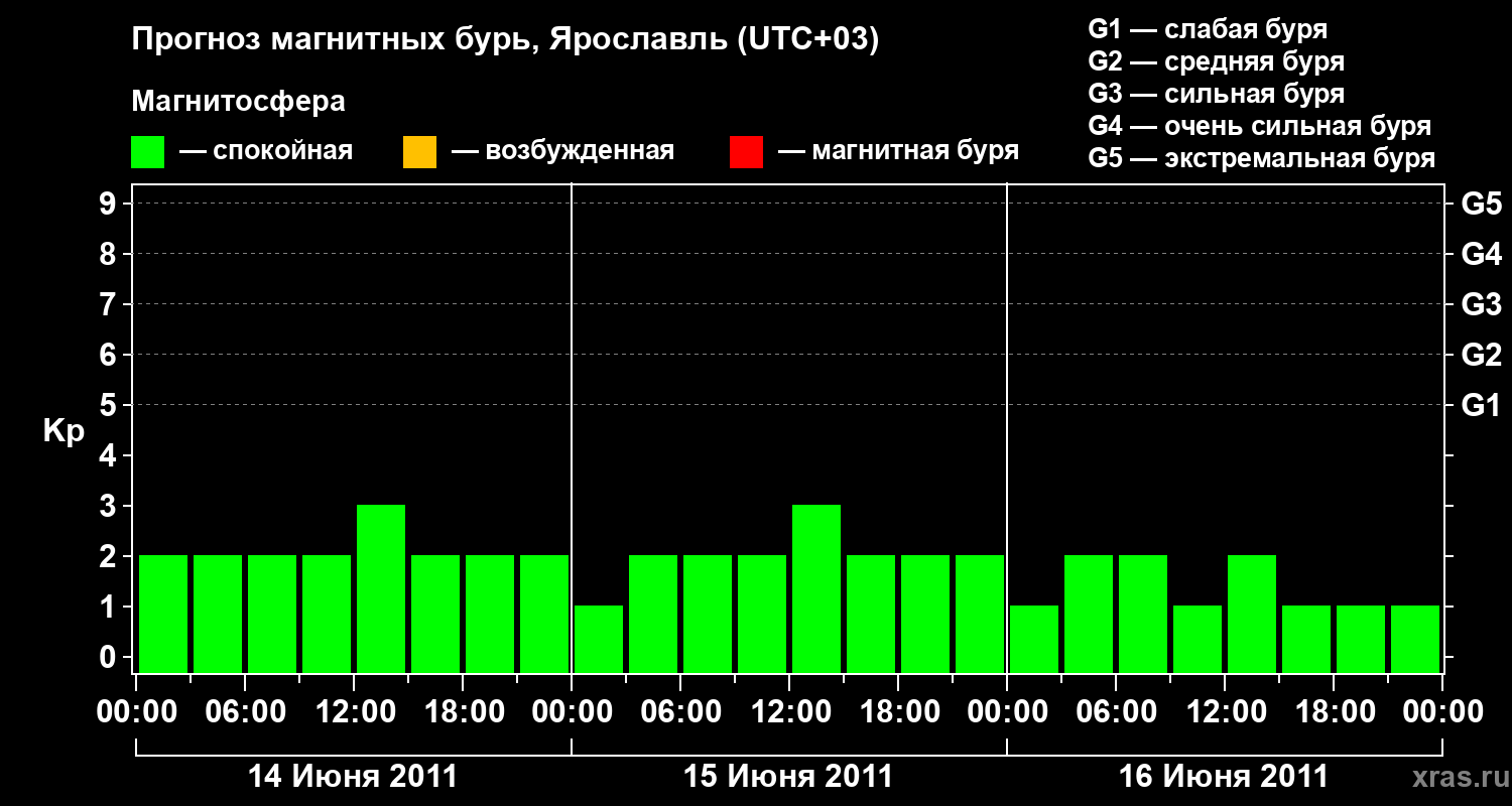 Прогноз магнитных бурь в Ярославле — 14 июня 2011 года