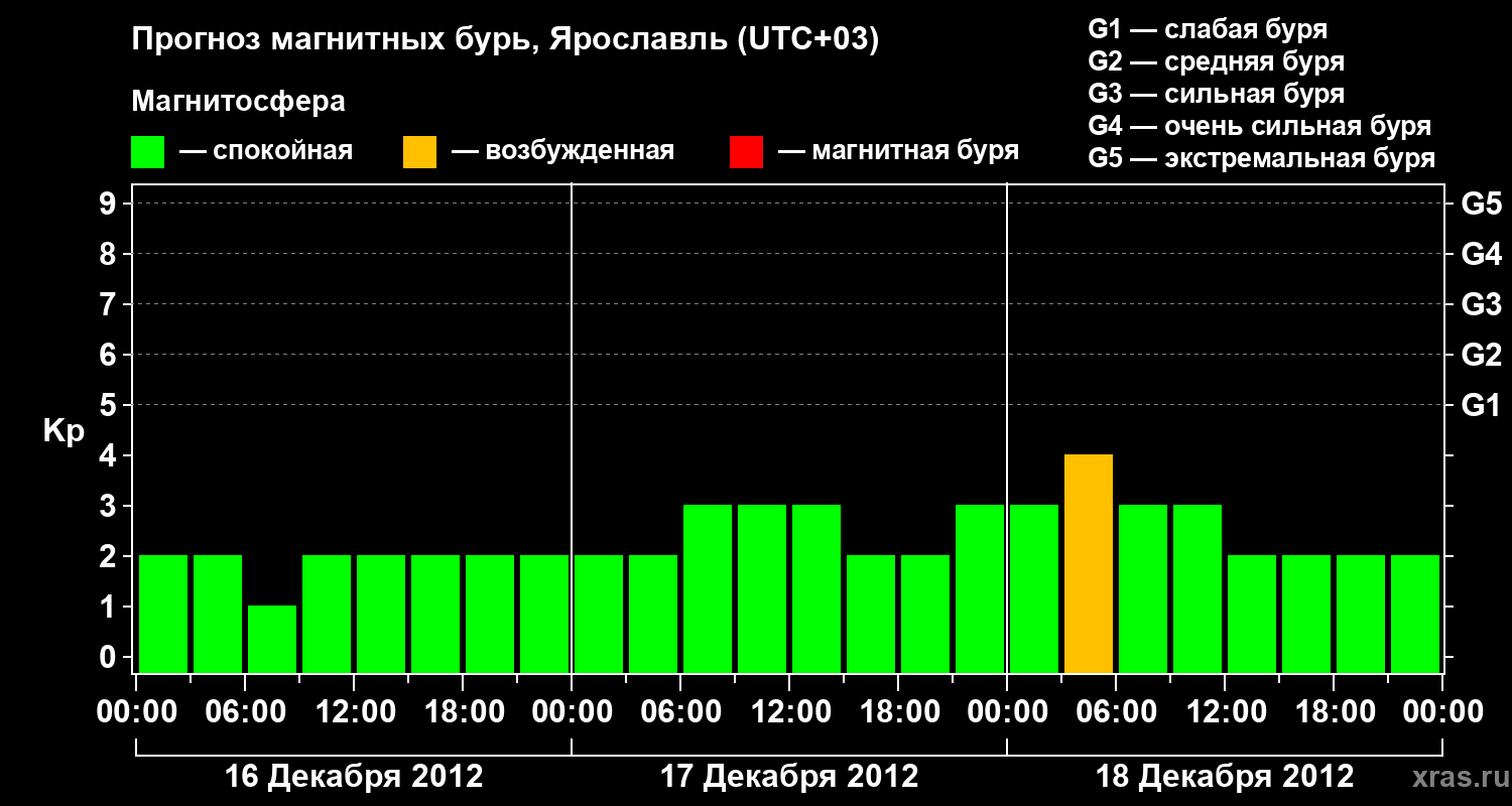 Прогноз магнитных бурь в Ярославле на 16 декабря 2012 года