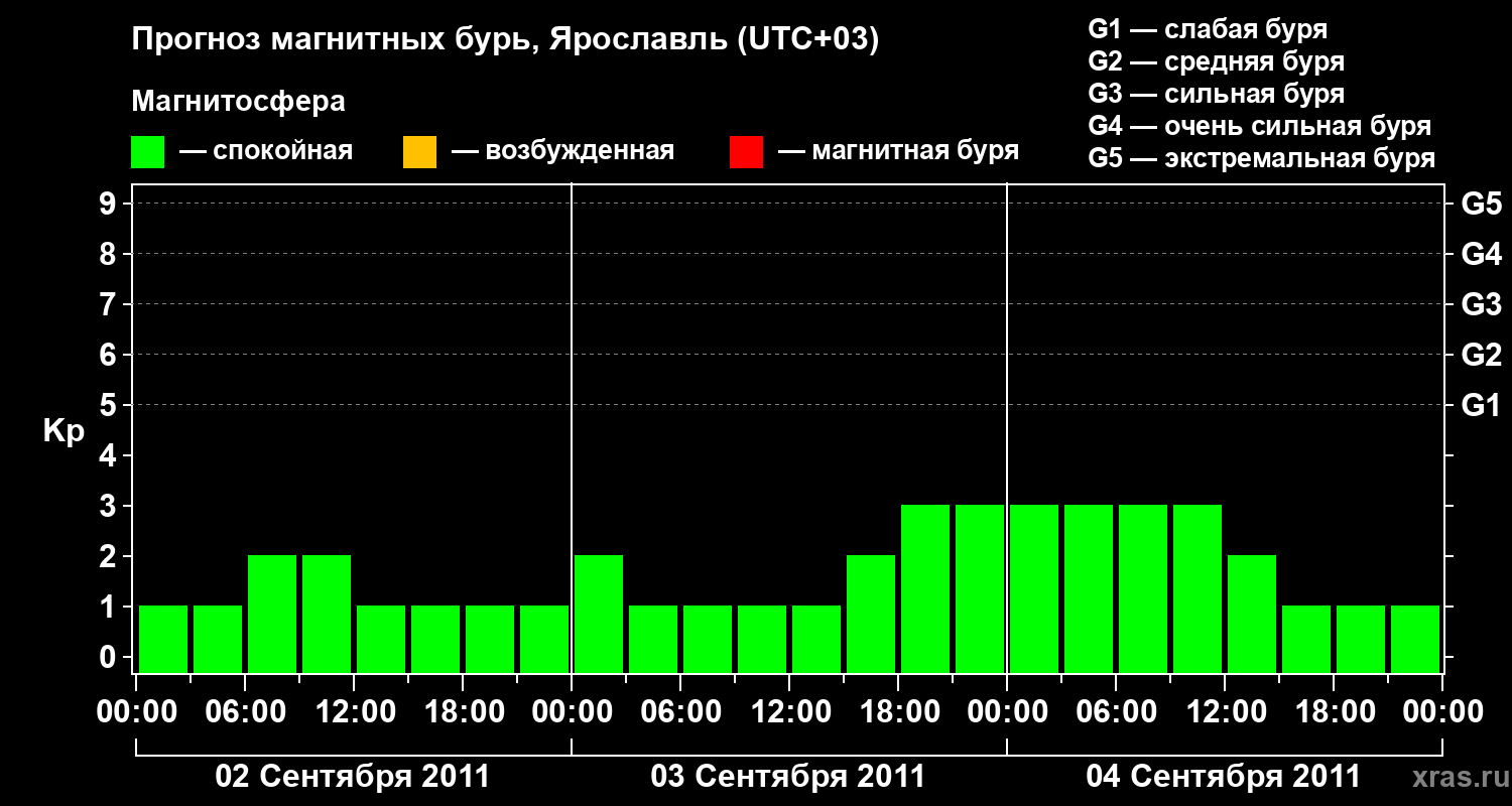 Прогноз магнитных бурь в Ярославле — 2 сентября 2011 года