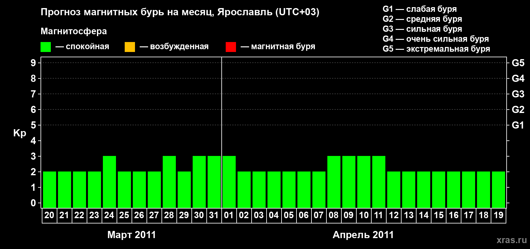 Прогноз магнитных бурь в Ярославле — 20 марта 2011 года