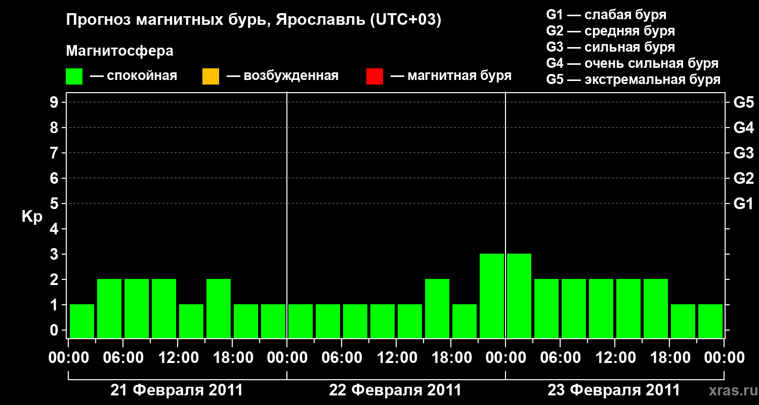 Прогноз магнитных бурь в Ярославле — 21 февраля 2011 года